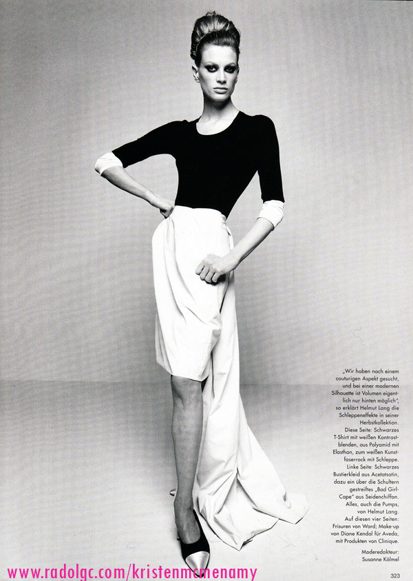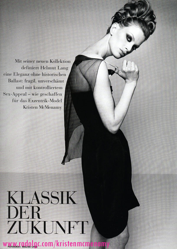 Vogue Germany September 1995 "Klassik der Zukunft" Model: Kristen McMenamy Photographer: Walter Chin Stylist: Susanne Kolmel Hair: Ward Makeup: Diane Kendal