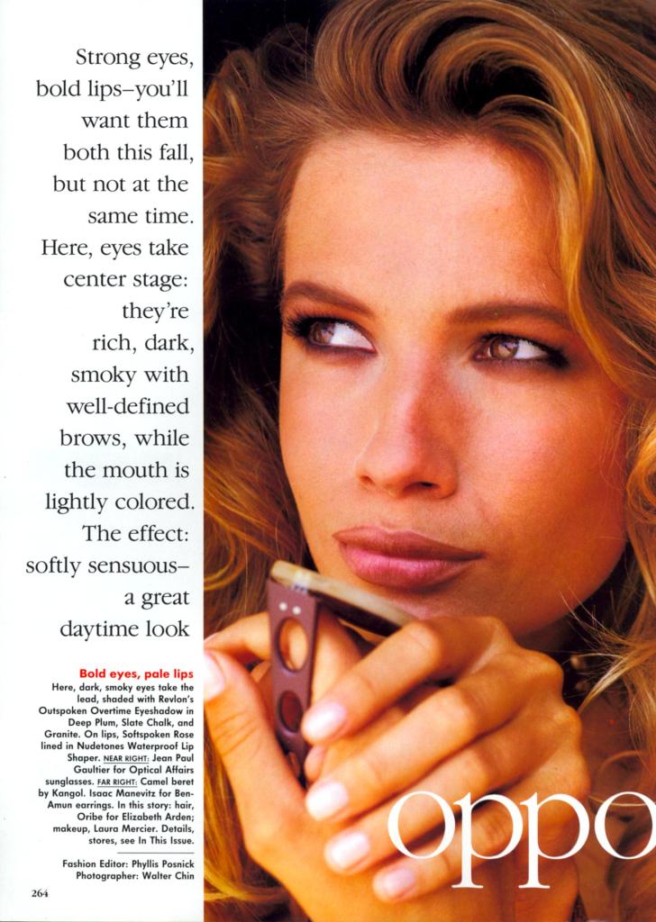 Elle France March 21th, 1988 "Lingerie : la délicatesse d'Armani" Model: Claudia Schiffer Photographer: Walter Chin Stylist: Douce de Andia Hair: Lucia Iraci