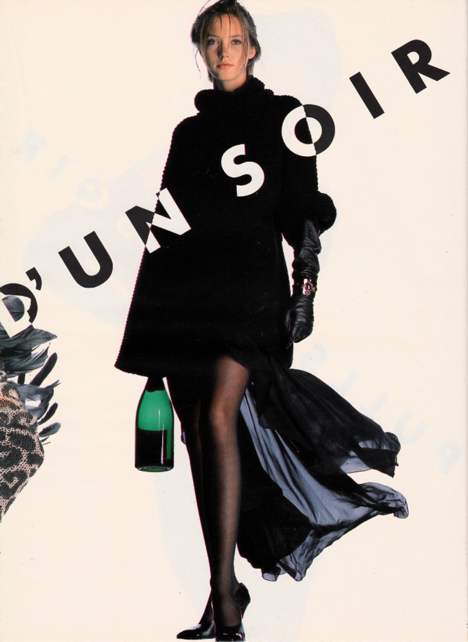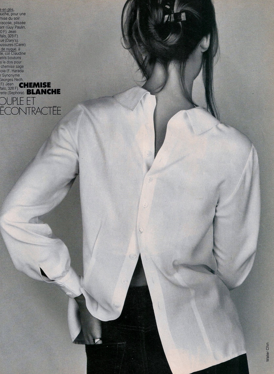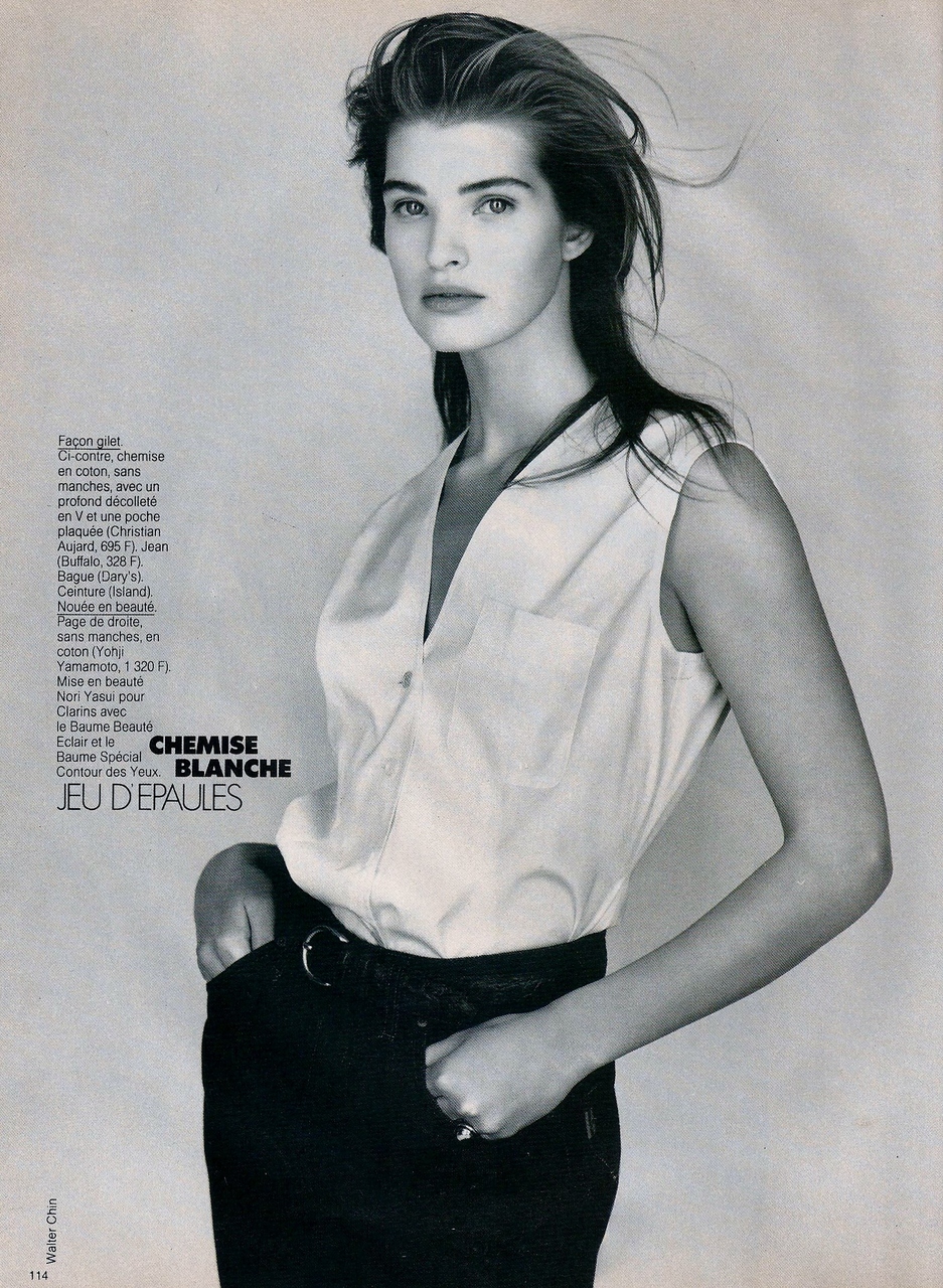 Elle France January 16th, 1989 Une Echarpe Bien Nouee Photographer: Walter Chin Model: Rachel Mulholland Stylist: Beatrice Amagat Hair: Guillaume Makeup: Thibault Vabre