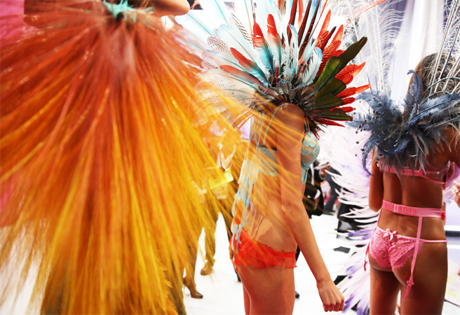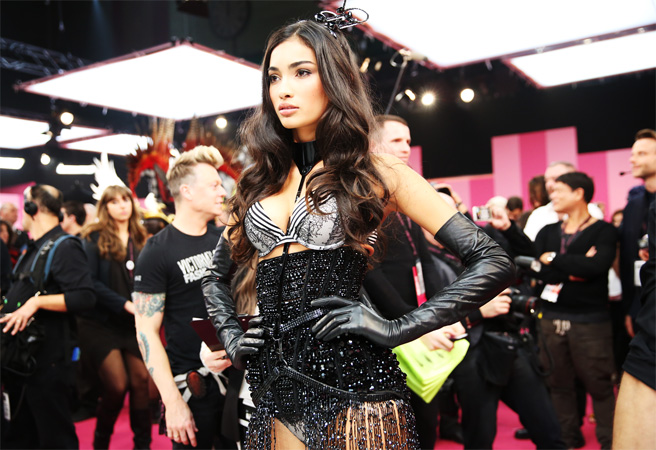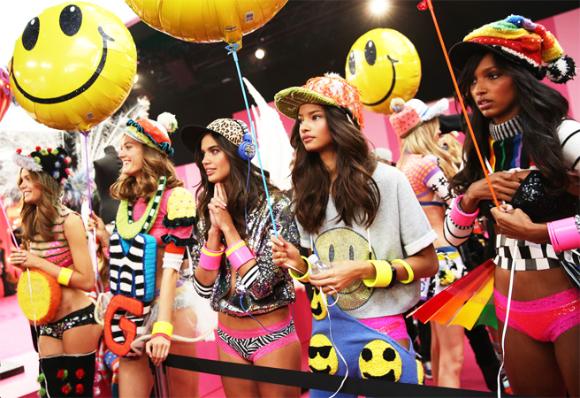 British Invasion1- Candice Swanepoel (Fantasy Bra)2- Behati Prinsloo3- Lily Donaldson4- Cara Delevingne5- Barbara Fialho6- Jourdan Dunn7- Karlie Kloss8- Kasia Struss9- Adriana Lima10- Cindy Bruna11- Devon Windsor12- Lily AldridgeBirds of Paradise1- Lais Ribeiro2- Alessandra Ambrosio3- Erin Heatherton4- Lindsay Ellingson5- Izabel Goulart6- Joan Smalls7- Jacquelyn Jablonski8- Hilary Rhoda9- Magdalena Frackowiak10- Maria BorgesShipwrecked1- Doutzen Kroes2- Toni Garrn3- Sui He4- Behati Prinsloo5- Candice Swanepoel6- Lily Aldridge7- Karlie Kloss8- Martha Hunt9- Sigrid Agren10- Lindsay Ellingson11- Alessandra Ambrosio12- Constance JablonskiPink Network1- Ieva Laguna2- Jessica Hart3- Ming Xi4- Caroline Brasch Nielsen5- Malaika Firth6- Elsa Hosk7- Josephine Skriver8- Jasmine Tookes9- Sara Sampaio10- Jac JagaciakParisian Nights1- Adriana Lima2- Doutzen Kroes3- Cindy Bruna4- Lais Ribeiro5- Alessandra Ambrosio6- Jourdan Dunn7- Joan Smalls8- Kelly Gale9- Cara Delevingne10- Izabel Goulart11- Erin Heatherton12- Barbara FialhoSnow Angels1- Behati Prinsloo2- Karlie Kloss3- Linsay Ellingson4- Constance Jablonski5- Candice Swanepoel6- Toni Garrn7- Sui He8- Lily Donaldson9- Maryna Linchuk10- Lily Aldridge11- Doutzen Kroes12- Adriana Lima13- Magdalena Frackowiak+14- Alessandra AmbrosioTotal outfits: 70