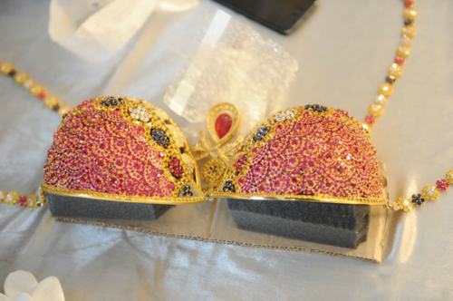 Presenting you Victoria's Secret, the company that operates over $5 billion a year in revenue, requests a $10 million bra adorned with diamonds, rubies and sapphires, but can't even afford to put it on a nice stand so they have resulted to using cheap cardboard. ![]()