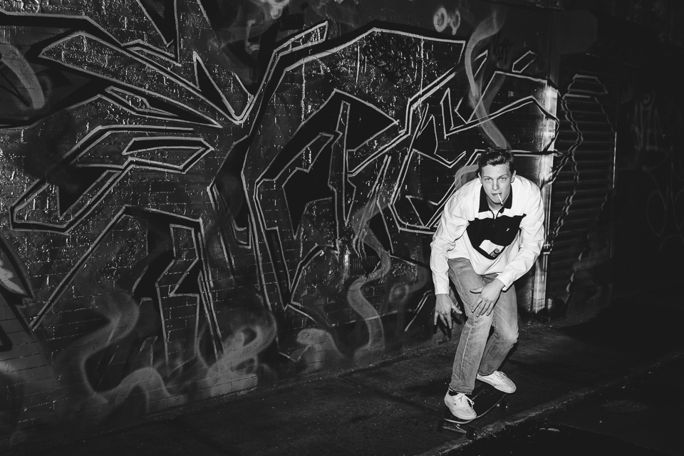 “Skateboarding! I started when I was 16. When I’m in Berlin I like going to the park with my friends. On trips I just cruise around. It’s a great way of getting to castings too.”