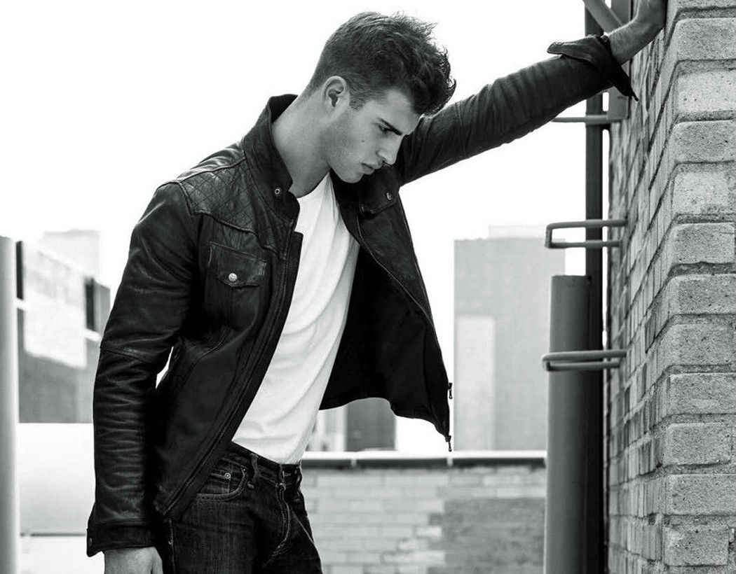 Soul model Humbert Clotet reunites with photographer Brian Jamie for a brand new photo session. Opting for sophisticated black & white images, Humbert channels legendary icon James Dean in rooftop images shot in New York City, wearing washed jeans, a basic white cotton tee and a black leather biker jacket.