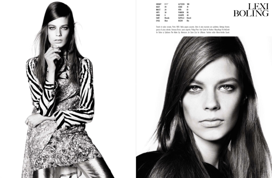Photographer: Steven Meisel Models: Anna Ewers, Ophelie Guillermand, Cindy Bruna, Lexi Boling, Mariana Santana, Elisabeth Erm, Ola Rudnicka, Imaan Hamman & Gracie Van Gastel Styling: Marie-Amelie Sauvé Hair: Guido Make Up: Pat McGarth Nails: Jin Soon Choi
