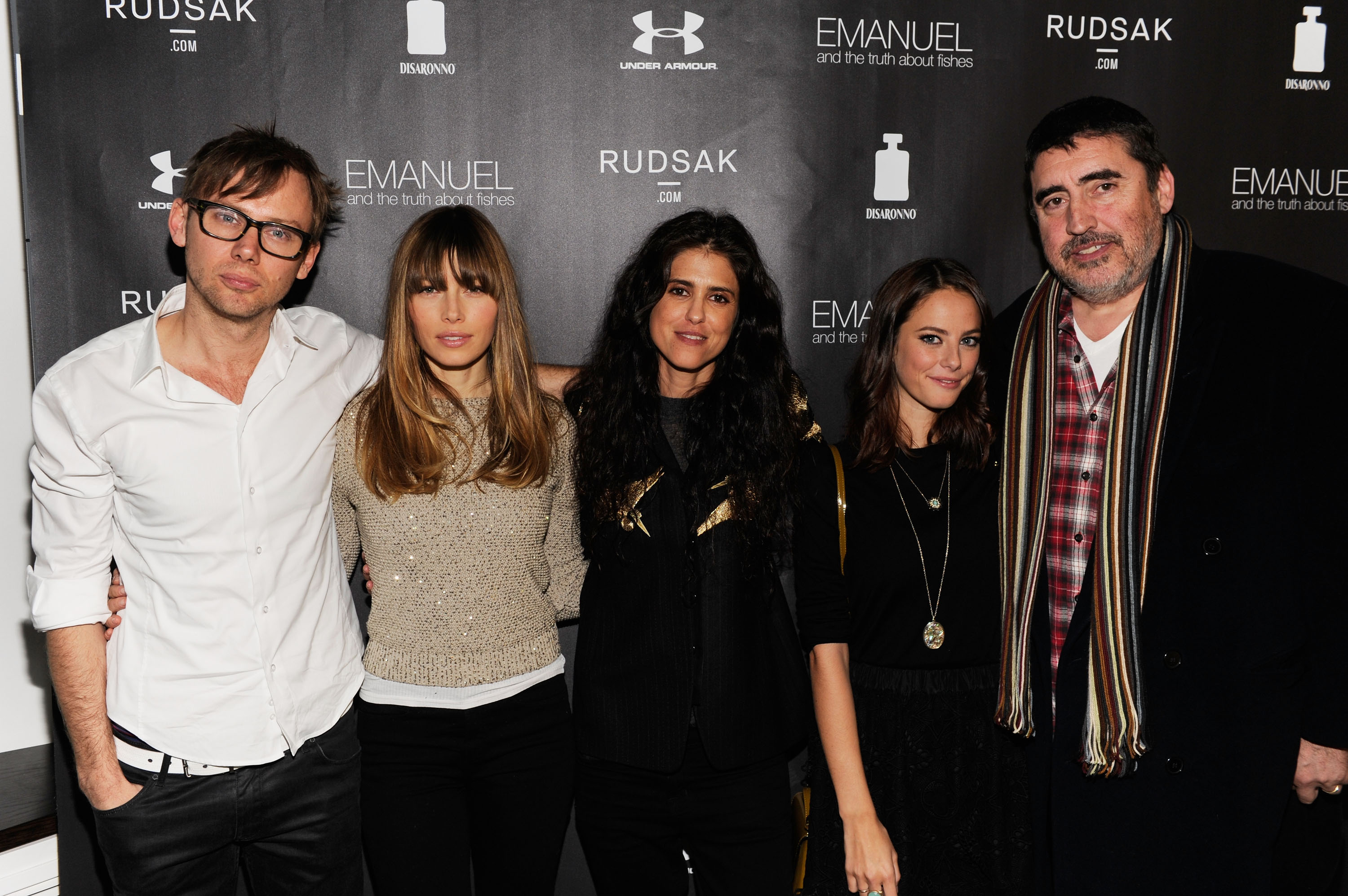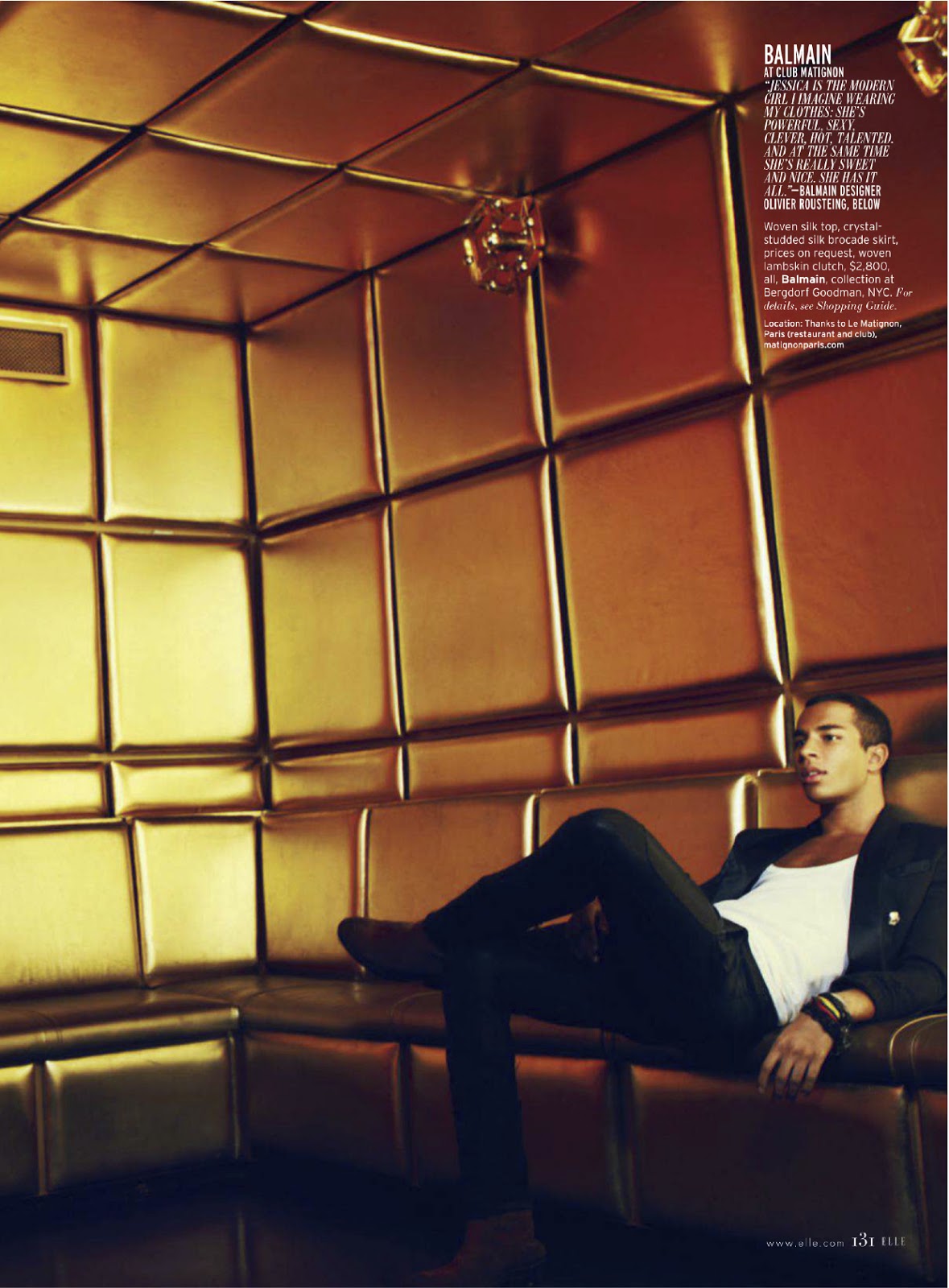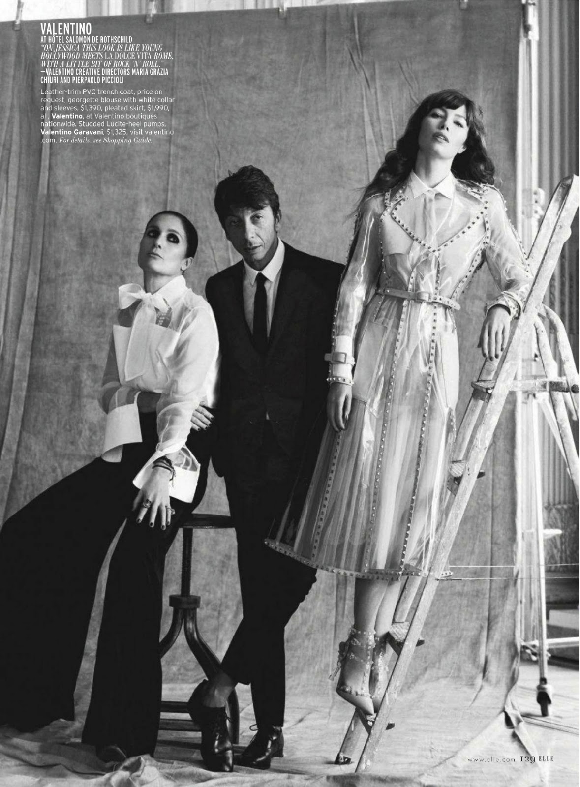 Celebrities: Jessica Biel, fashion designers Jean Paul Gaultier, Azzedine Alaia, Isabel Marant, Christian Louboutin, Valentino, Balmain, and Giambalttista Valli, with unnamed male models.