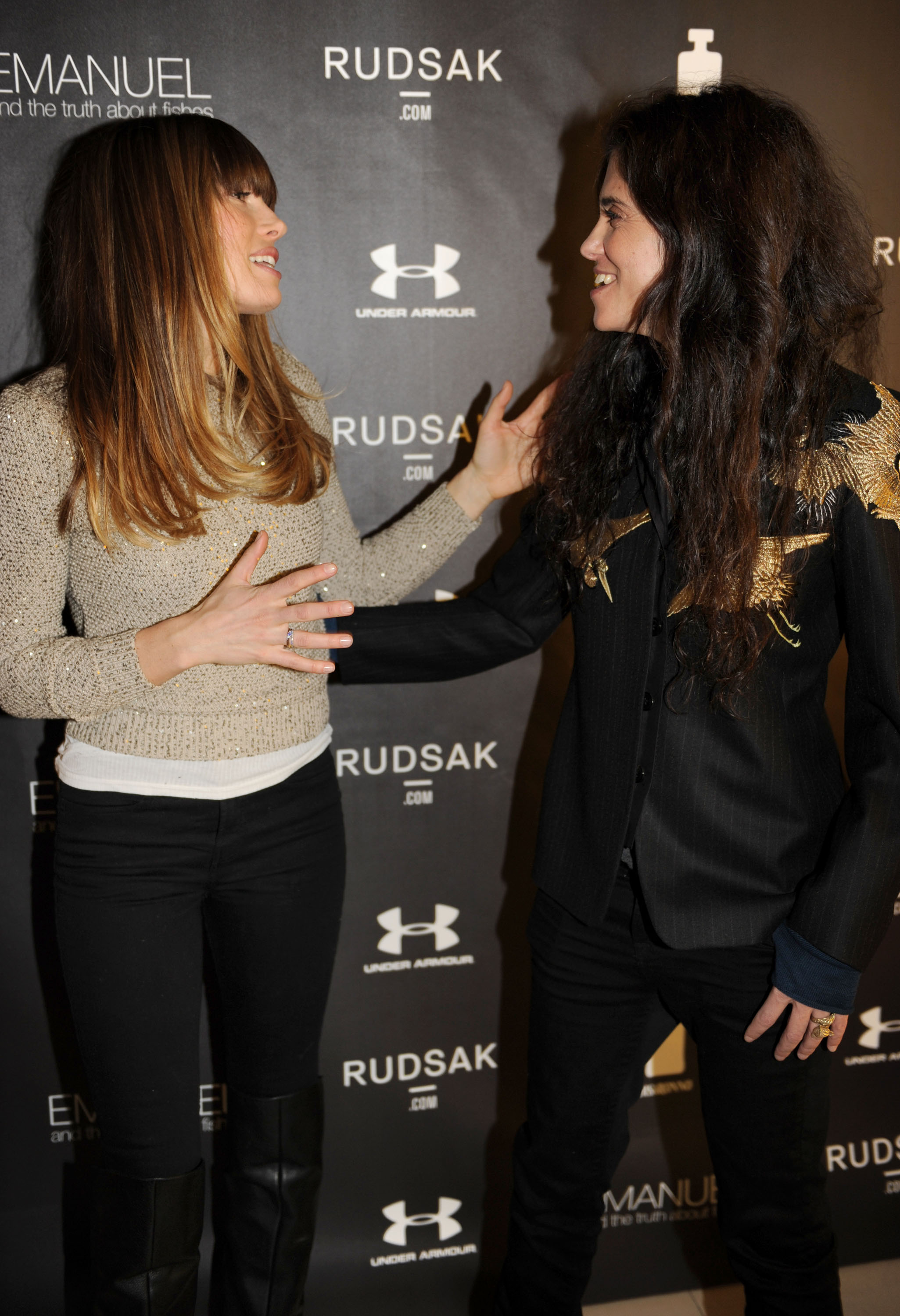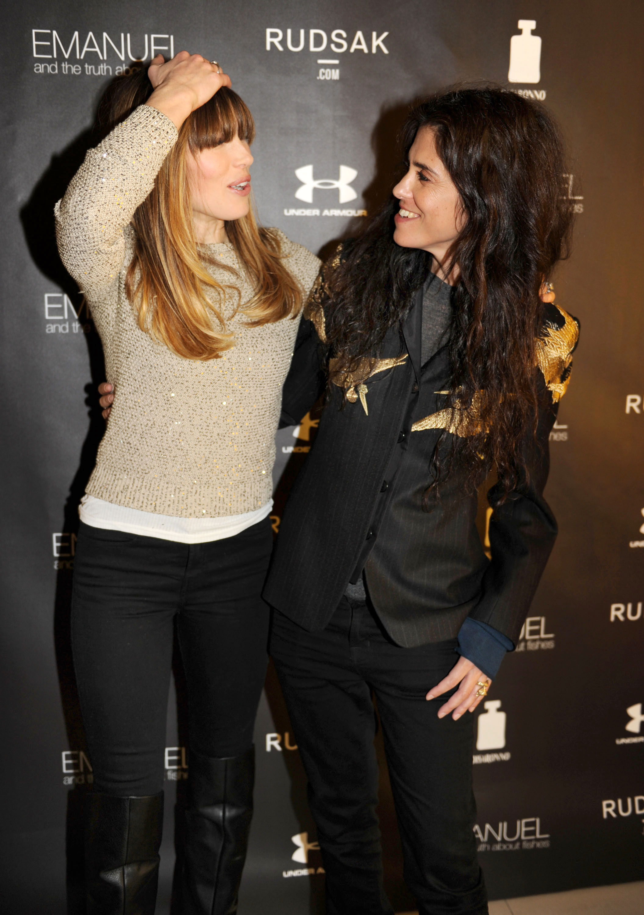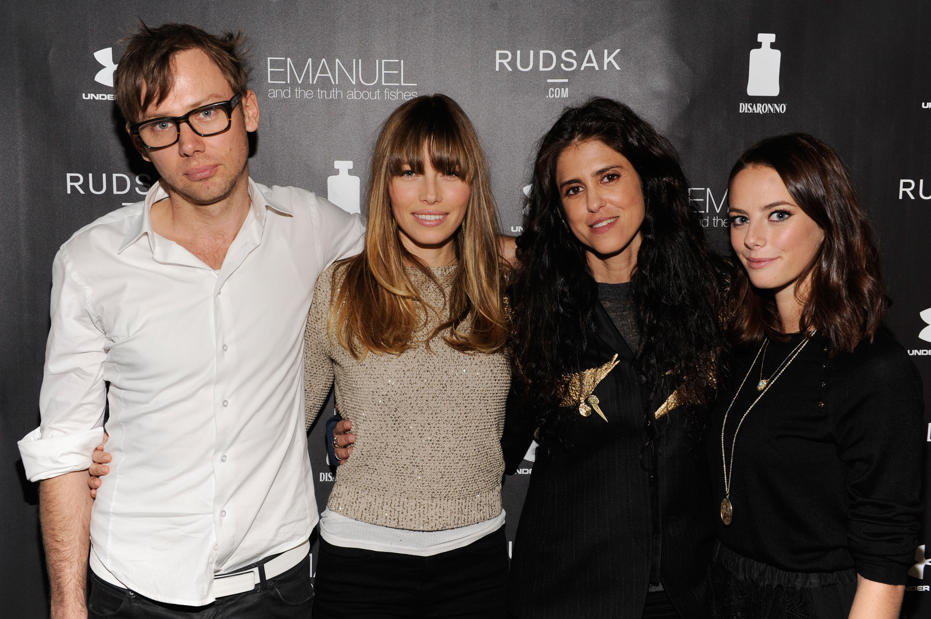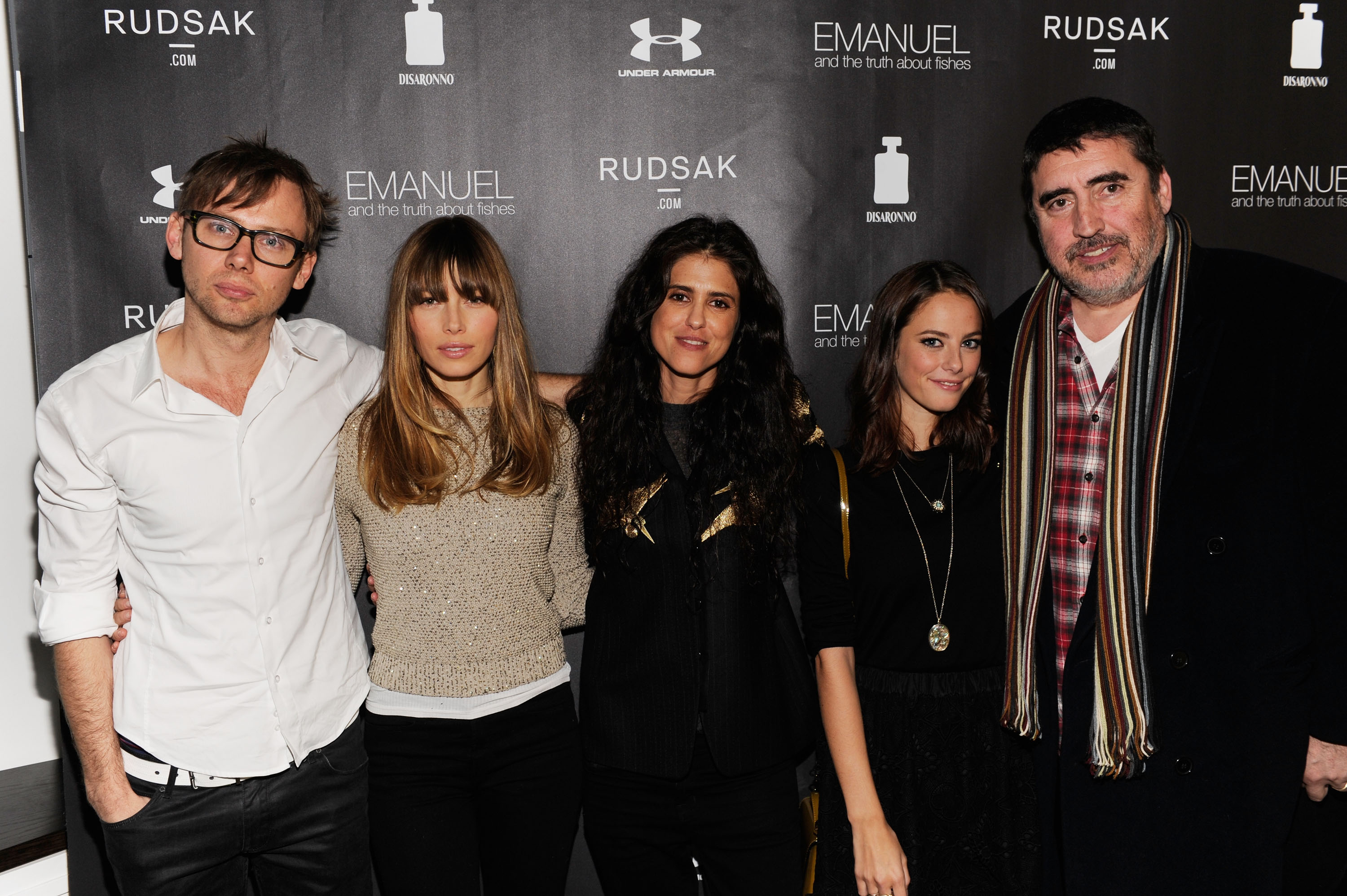 Celebrities: Jessica Biel, fashion designers Jean Paul Gaultier, Azzedine Alaia, Isabel Marant, Christian Louboutin, Valentino, Balmain, and Giambalttista Valli, with unnamed male models.