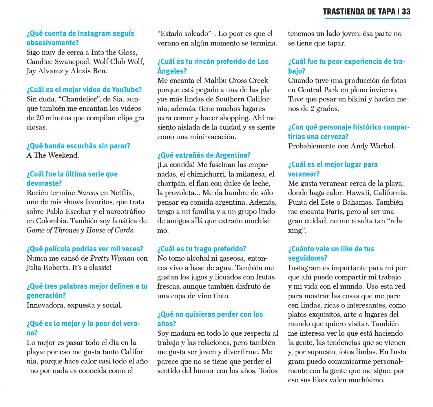 "I've always really enjoyed taking pictures and I travel a lot so I used to post a lot of images on my Instagram. Then people started asking me a lot of questions about my lifestyle amongst other things, so I started a blog called cami-morrone.com. You're not really in control of anything when you're modeling, so it's fun to have something that's completely mine. In the beginning I couldn’t believe anyone was actually reading it, but the response has been amazing."
