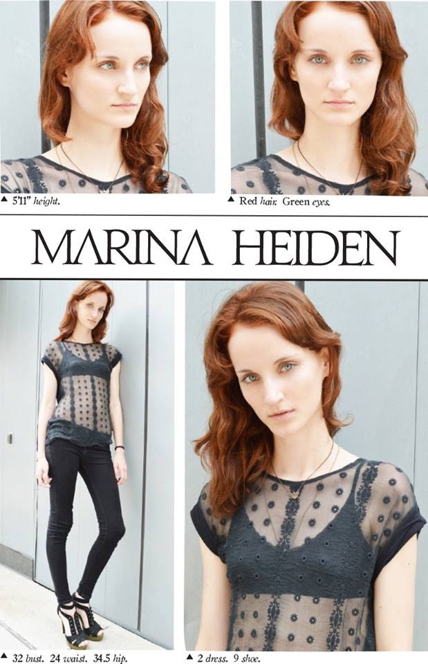 Name: Marina Heiden Age: 18 years old Agency: Kee Mod Hometown: Blumenau, SC Jobs: Louis Vuitton campaign, Marc Jacobs, Moschino parades Dream: help her mom with a writing career