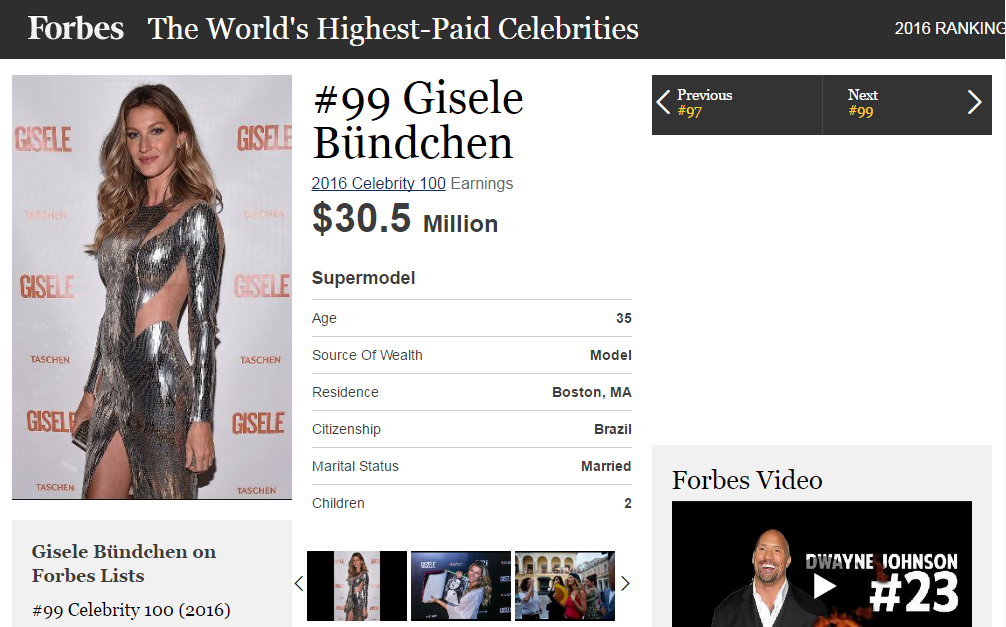 #99 Gisele Bündchen - $30.5 Million.