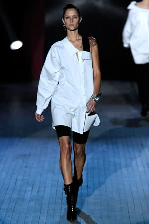 Alexander Wang look 7-"This long, off-the-shoulder button-up, a great weekend choice, is a chicer alternative to stealing your husband's white shirt."