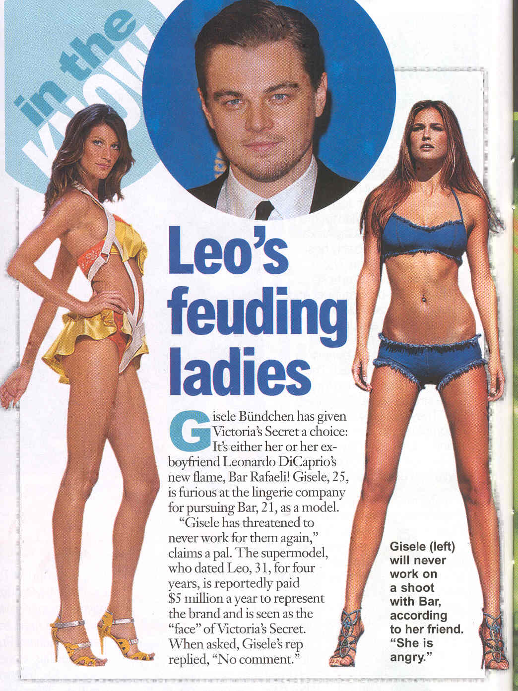 So I was watching this episode of The O.C called "The Heavy Lifting" and one of the characters was going through a VS catalogue to buy sexy lingerie for his wife and I could swear I caught a glimpse of Gisele! Cool. Now how about a bigger cameo, say a gold-digger married to one of the characters dads (like the show needs another one of those) sunbathing all the time, in many many bikini shots? Id like to see that