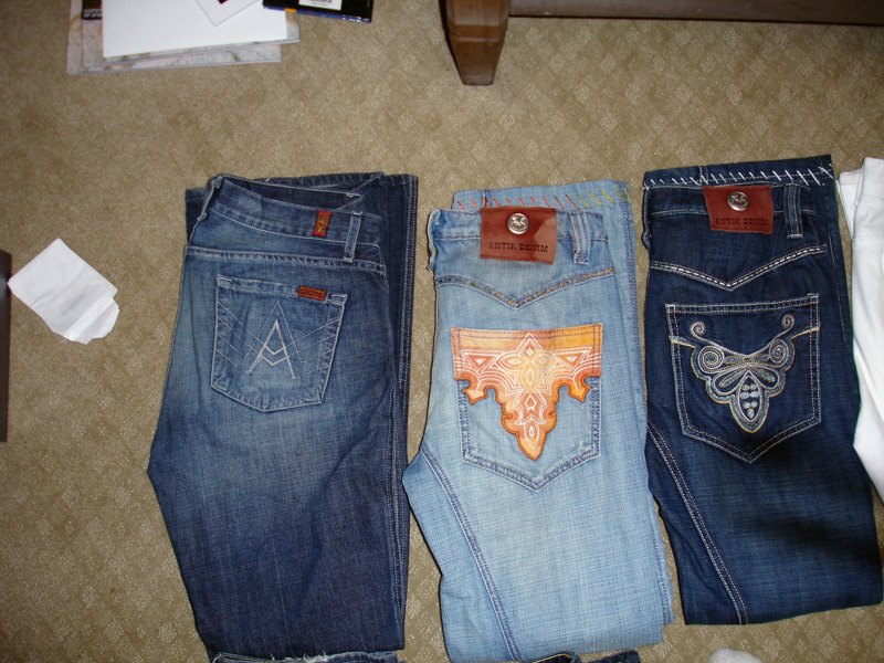 oh boy jeans. I'm a sucker for jeans especially designer jeans but i know people that give me hookups in the stores. So i have two pairs of 7 for all man kind, a pair of true religion, a pair of AG, and two pairs of Antik. I also still buy Guess Jeans. The 7's they were gifts and I treated myself for a pair of true religion for christmas, the AG my dad knows someone that the AG store on Robertson and he always gives us a deal, and I dont know about you guys but when you know someone that gives you jeans for 50% off you'd be buying Antik Denim as well.