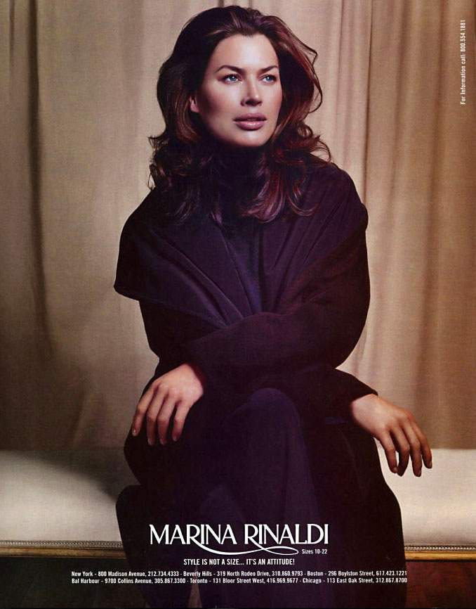 Advertisements: Anna Molinari, Bergdorf Goodman, Blumarine, Breil, Calvin Klein Jeans, Cerruti 1881, DKNY, Donna Karan Intimates, Easy Spirit sneakers, Ellen Tracy, Enrico Coveri, Firenze, Georgiou, Giorgio Armani, Guess?, J.Crew, Lazarus, L'Altra Moda, Lane Bryant, L'Oreal, Marina Rinaldi, Pantene Pro-V, Palmers Lingerie, PETA, Ray-Ban sunglasses, Rado watches, Revlon, Roc Cosmetics, Salon Selectives, Twigy