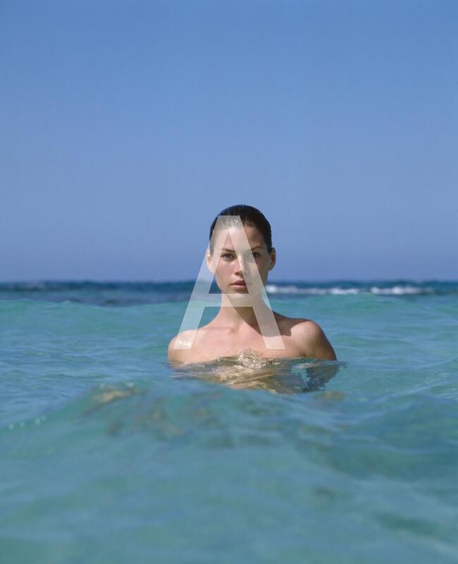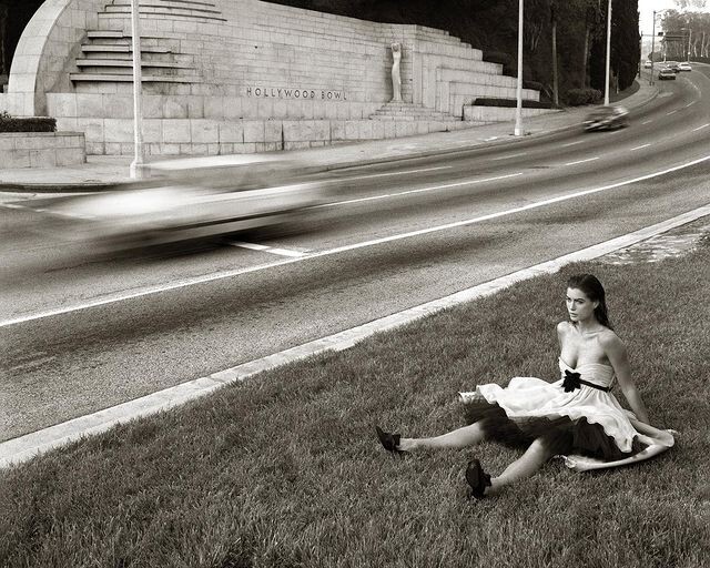 Albert Watson photograph “Carre Otis at the Hollywood Bowl, Los Angeles, 1990,” previously unpublished from a shoot for Blumarine.