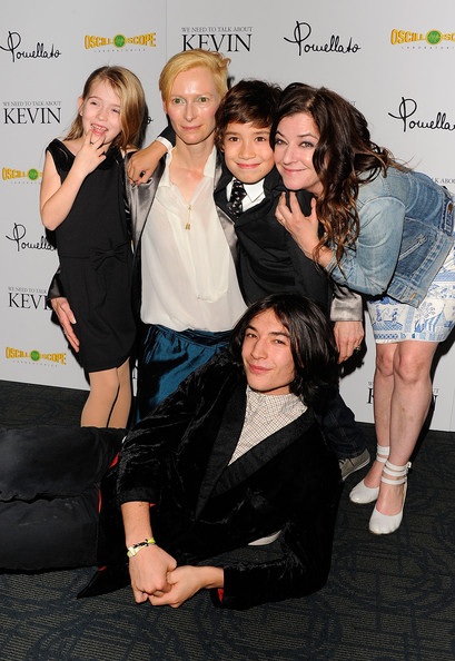 In this photo: Tilda Swinton, John C. Reilly, Lynne Ramsay, Ezra Miller