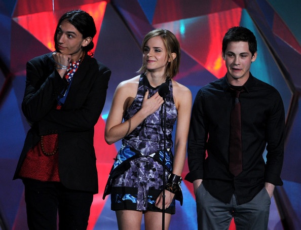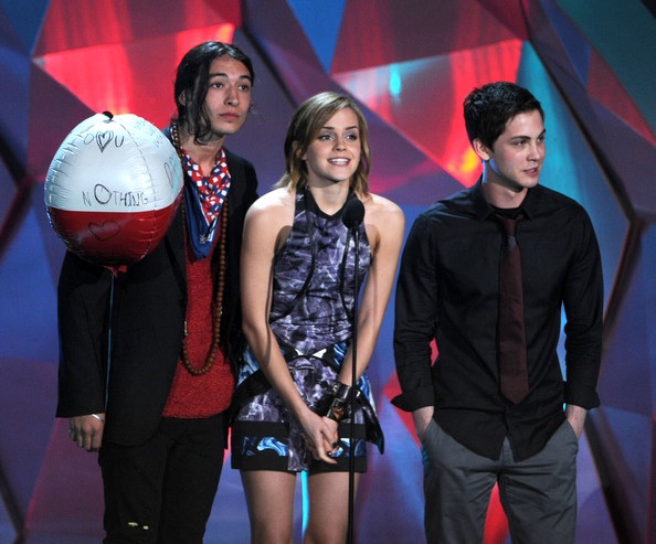 In this photo: Emma Watson, Logan Lerman, Ezra Miller