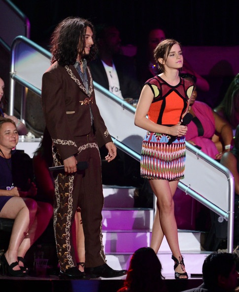 In this photo: Emma Watson, Ezra Miller