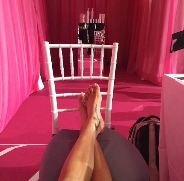 An angels proper way to go to work...#pinkonpink#vsfashionshow @victoriassecret #countdown
