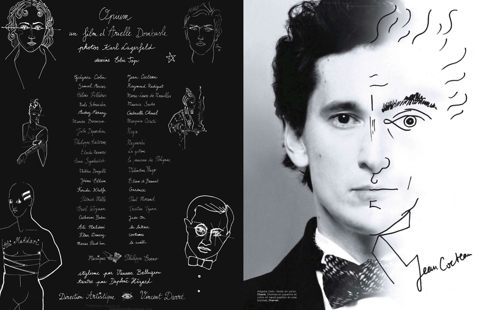 Models: Grégorie Colin, Élie Top, Catherine Baba, Ariel Wizman, Anna Sigalevitch, Patrick Mille, Samuel Mercer, Jéremie Elkaïm, Audrey Marnay, Arielle Dombasle, Philippe Katerine, Héléne Fillières, Marisa Berenson, Élodie Navarre, Valérie Donzelli, Niels Schneider, Farida Khelfa, Marine Prud'hon, Ali Mahdavi, Fleur Demery, Philippe Eveno, Julie Depardieu & Vincent Darré