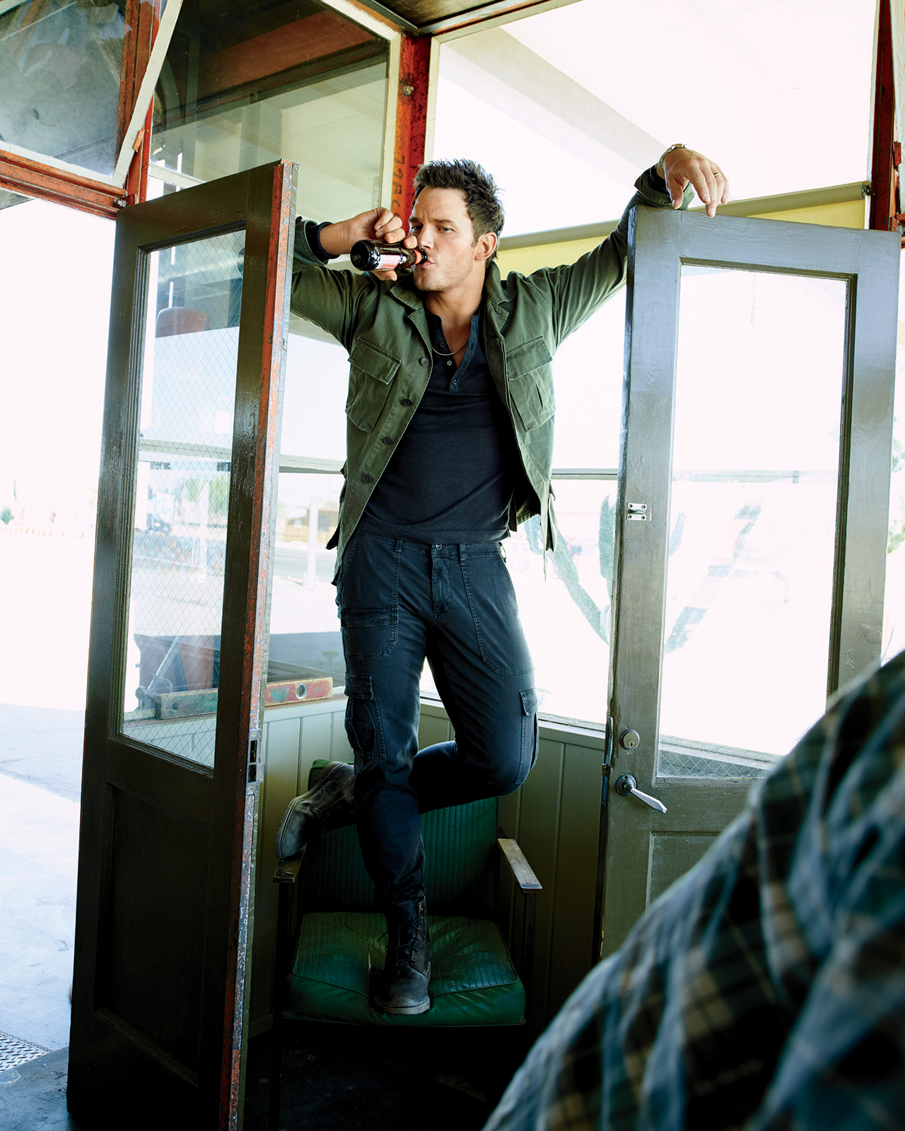 When I arrive at the house in the Hollywood Hills that Chris Pratt shares with his wife, the comic actress Anna Faris, and their 2 1/2-year-old son, Jack, Pratt has just returned from a long early-morning bike ride. He is getting in shape for three forthcoming movies and also preparing for a triathlon in a few weeks' time, something he was talked into by a good friend, a Navy Seal whom he met while making Zero Dark Thirty. This is the sort of thing you might expect from the new Chris Pratt—the one who posts six-pack selfies on Instagram, the one whose last movie, Guardians of the Galaxy, grossed nearly $800 million worldwide and re-invented him from a bumbling, chubby sitcom sidekick into everyone's favorite new movie star (a status he hopes to bolster with this month's Jurassic World). In other words, the one who has undergone a parallel physical and professional transformation without obvious precedent in Hollywood.Pratt's road here, to this career and this body, has been unlikely and meandering. When he first auditioned for movies in his early twenties he would try out for all kinds of roles, but he soon fell into the first of the two stereotypical parts that would fill up his next decade. "Typically, I was getting typecast as the bad boyfriend. The boyfriend of the girl who you hope ends up with the guy you like. That was my bread and butter for a long time," he says. He's had a quick shower and has lit a cigar—some combination of late-morning pleasure and character prep for his next movie, The Magnificent Seven. "Looking back, I think I know why. Physically, I looked like an asshole."