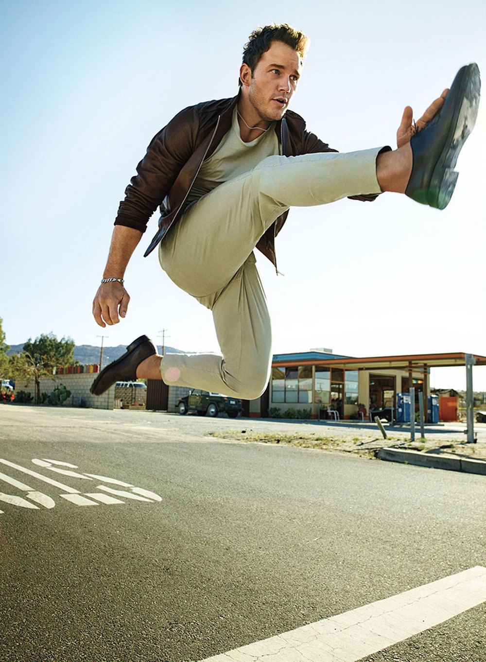 Either way, he clearly thinks of Jack as a kind of reality check. "I have a feeling I'll be tested and I'll have to prove to him that he's more important to me than show business," says Pratt, "and I feel I'll be ready to pass that test. You know, if it means not being Indiana Jones or if it means turning down a big paycheck so that I can go camping for the weekend, being difficult with my contract so that I can be let out, and it means the quality of the film goes down because I'm not there to give everything, then so be it. And if it means retiring early and getting a ranch somewhere and just bird hunting, that's kind of what I secretly want to do anyways, so"—he laughs—"that'll be sweet."
