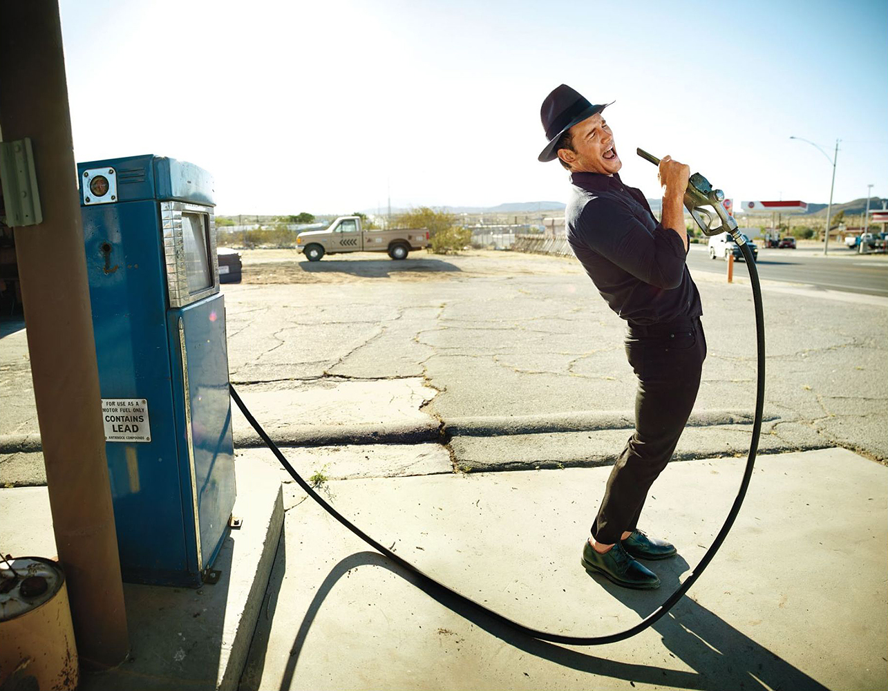 On Jurassic World, all of Pratt's ideas and approaches were combined into a kind of mantra that he would repeat to himself just before the camera rolled: "Flow core, no TC, volume up point five, Eric Church." Eric Church to remind him of "Dark Side," a song by Church that Pratt was listening to over and over, and the darkness in this character it encapsulated. "Flow core" to remind him of his posture when he was paddleboarding. "Volume up point five" to remind him to make his voice slightly louder. "No TC" to remind him to lead with his forehead, in a formulation only a formerly fat man would think to use: No triple chin.