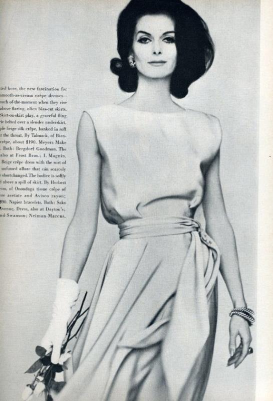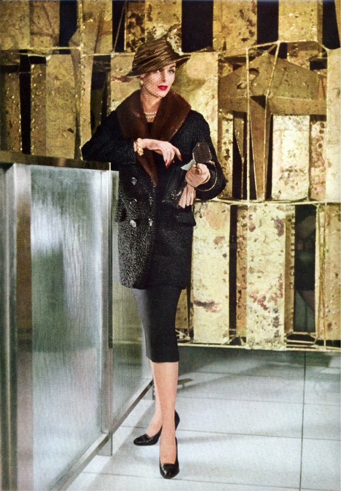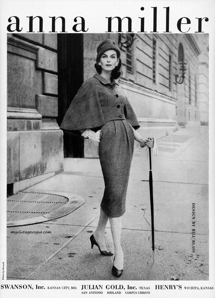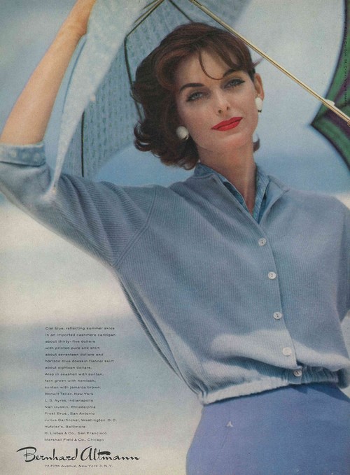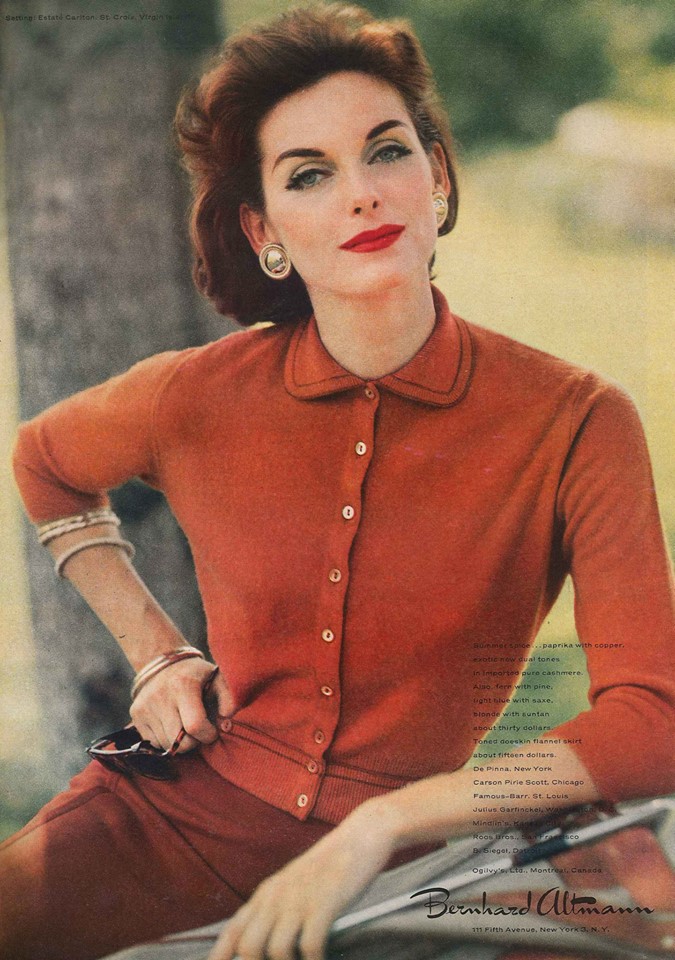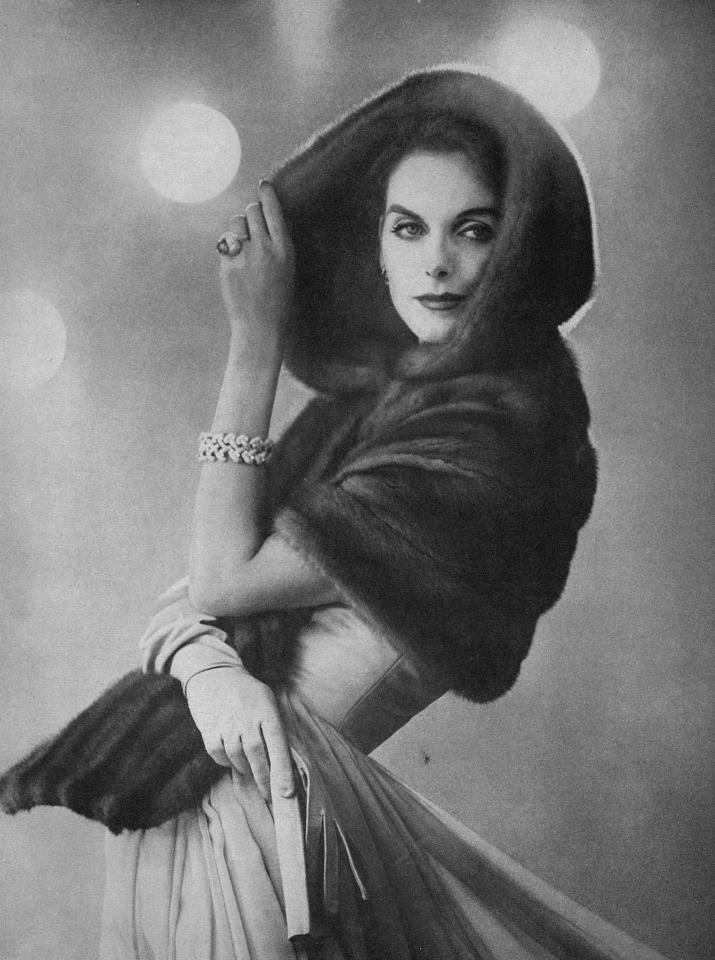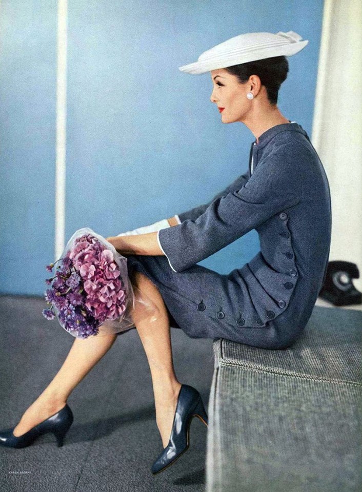 Anne Sainte-Marie from California had the perfect, sophisticated look for fashions of the 1950s. She's probably the most model often seen in any fashion magazine of the 1950s and the early 1960s.
