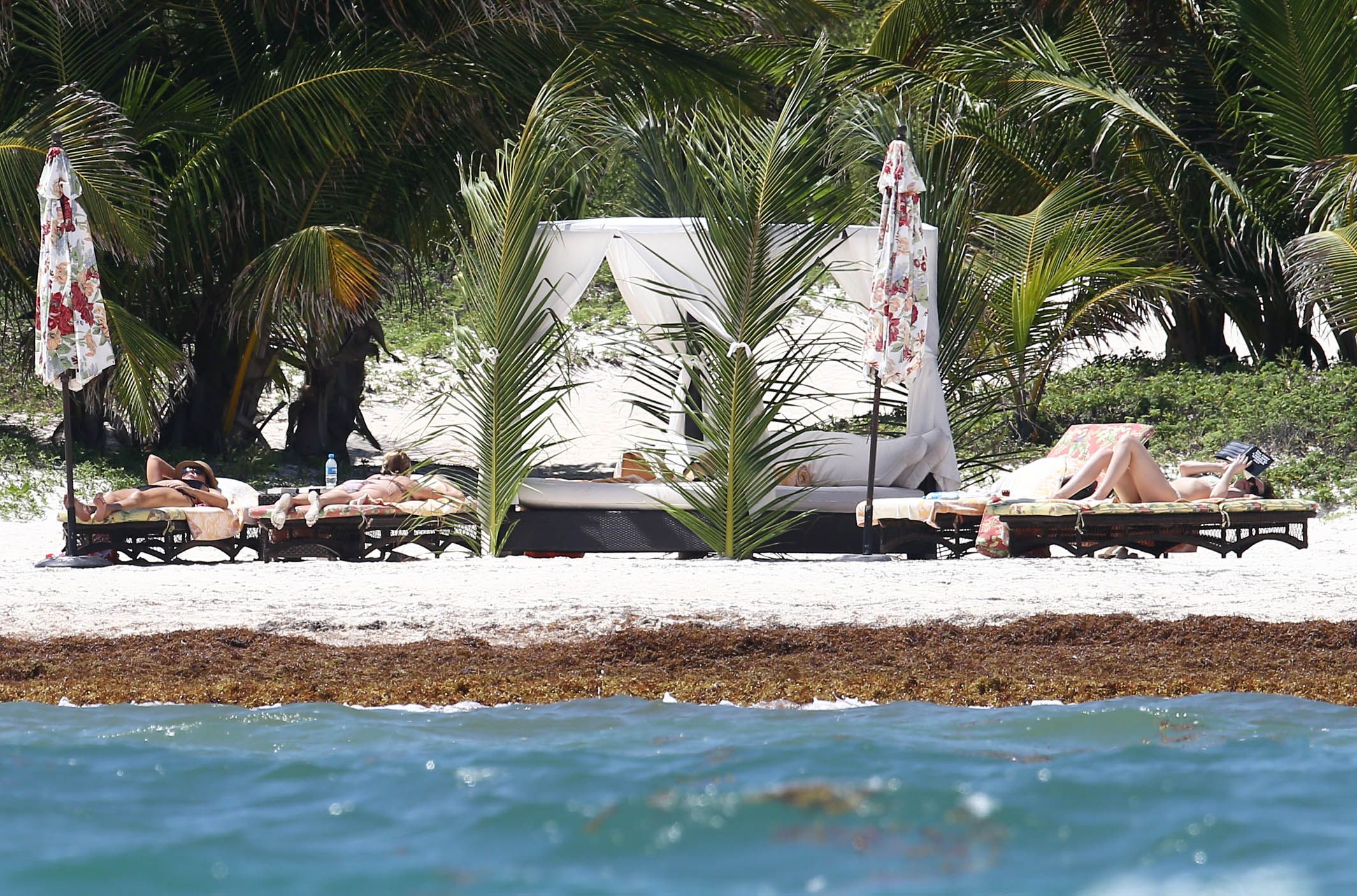 On the beach with her mom (Melanie Griffith) and Kris Jenner on March 17, 2015 in Cancún, Mexico.
