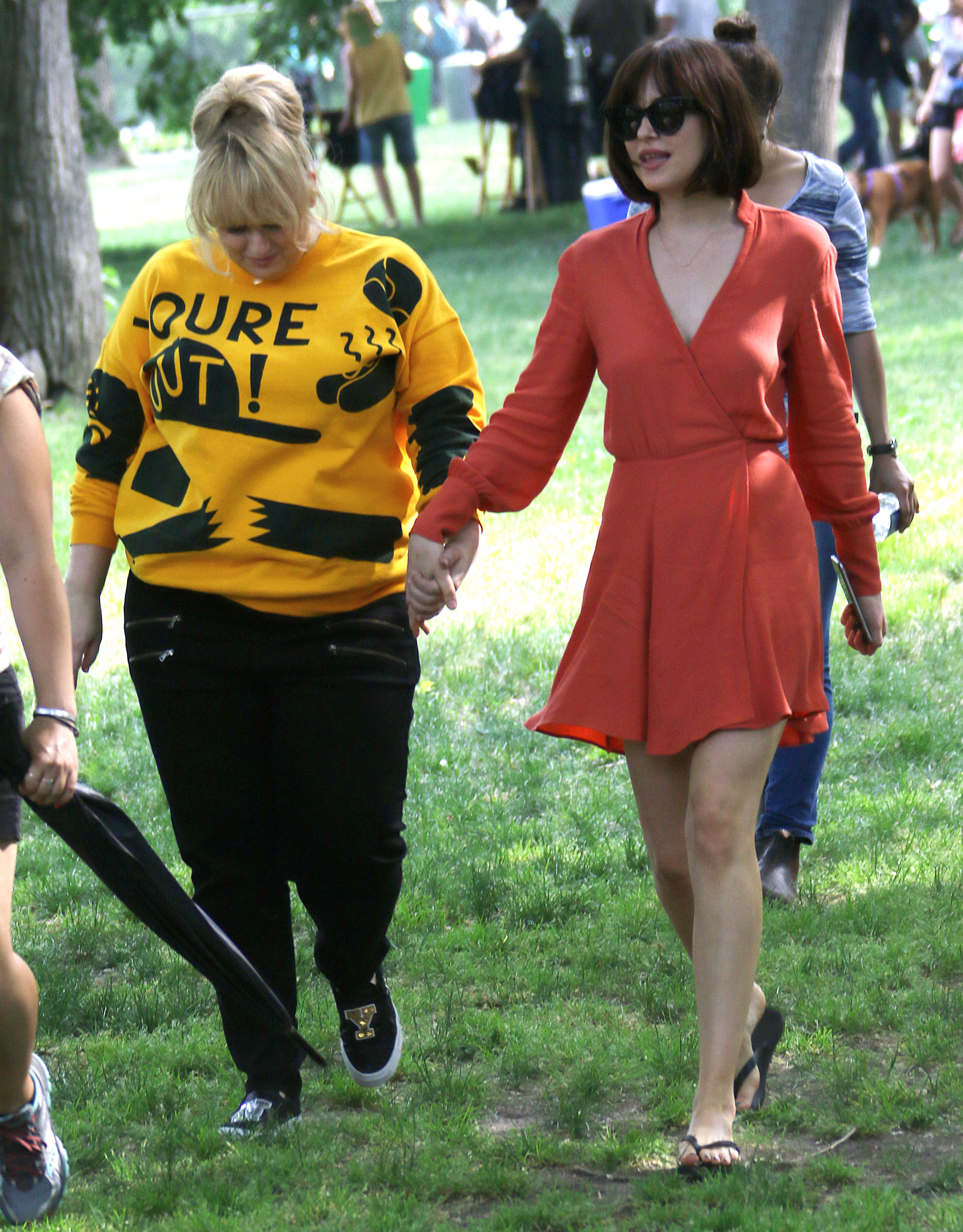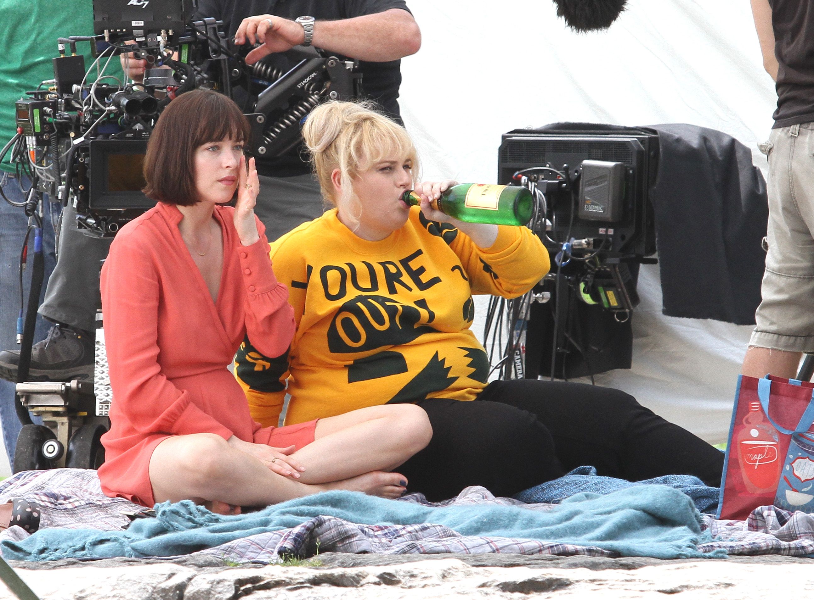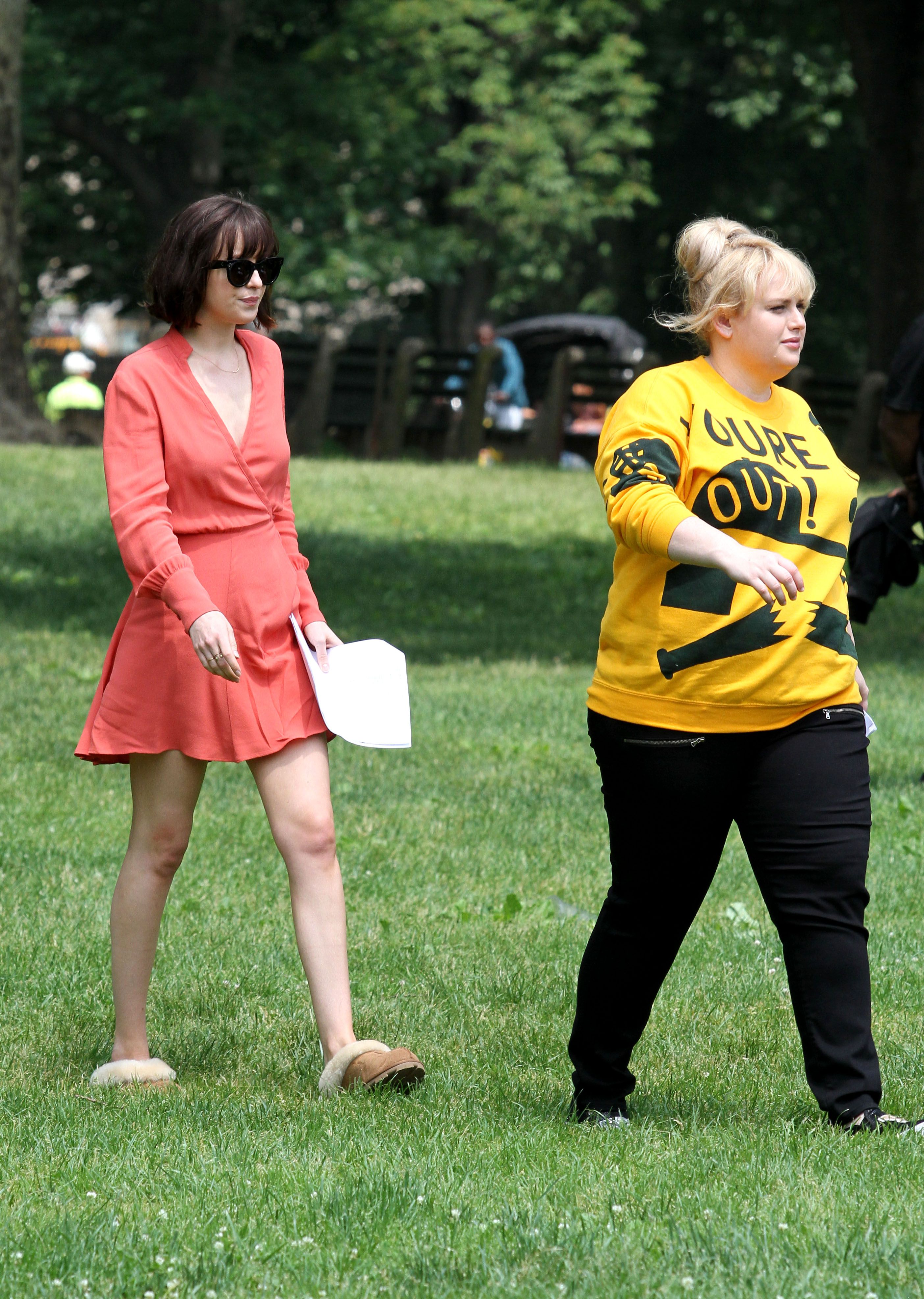 On the set of 'How To Be Single' with Rebel Wilson & Leslie Mann on May 28, 2015 in New York City.