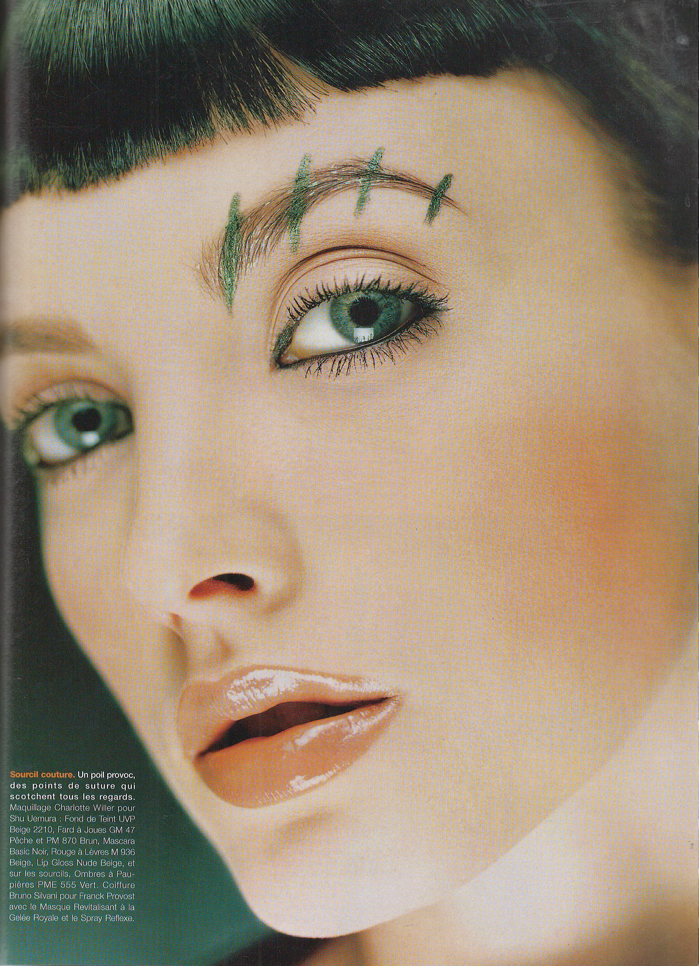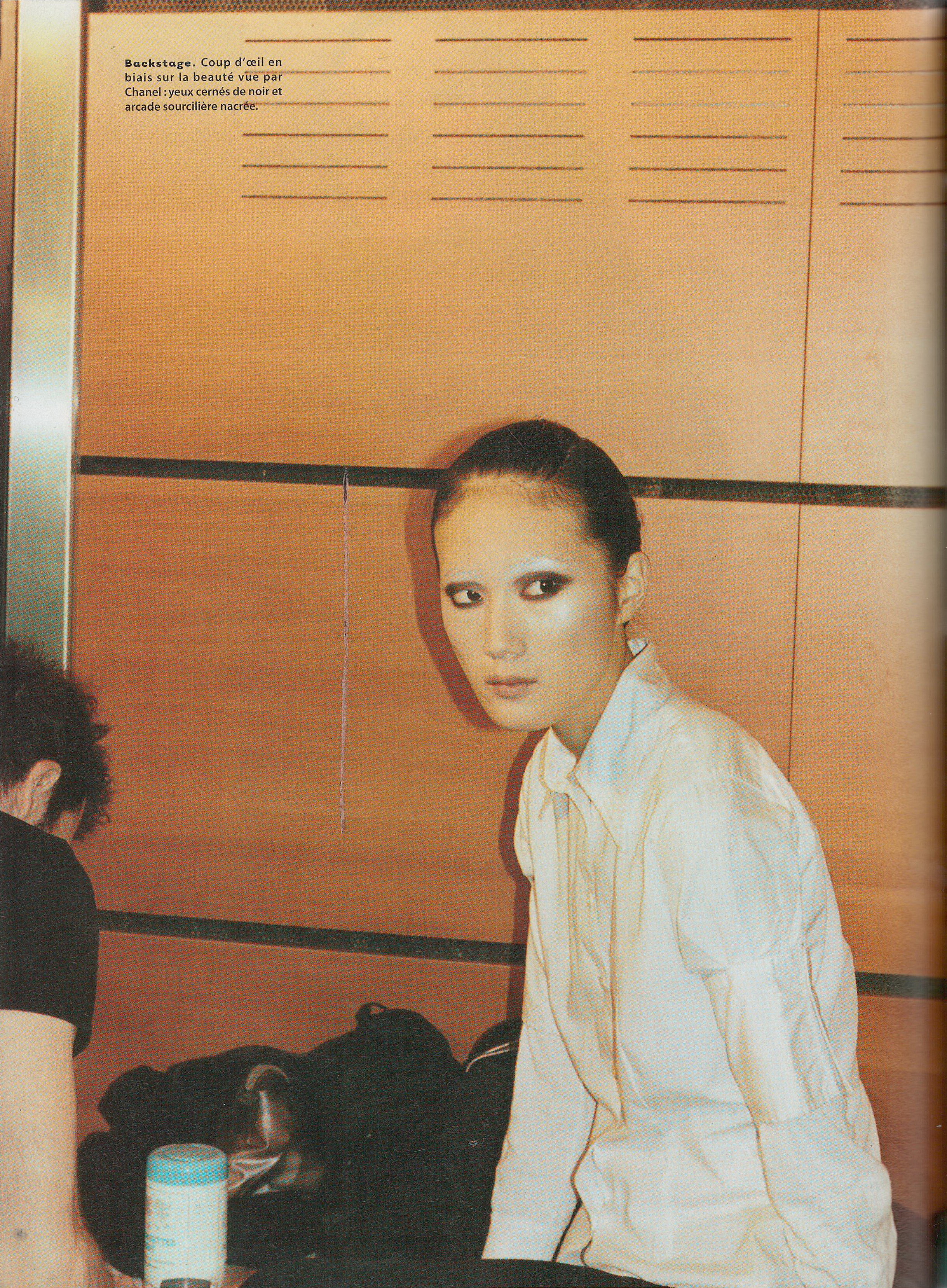 model Ana Claudia Michels (red dots on the eyebrows) in backstage picture