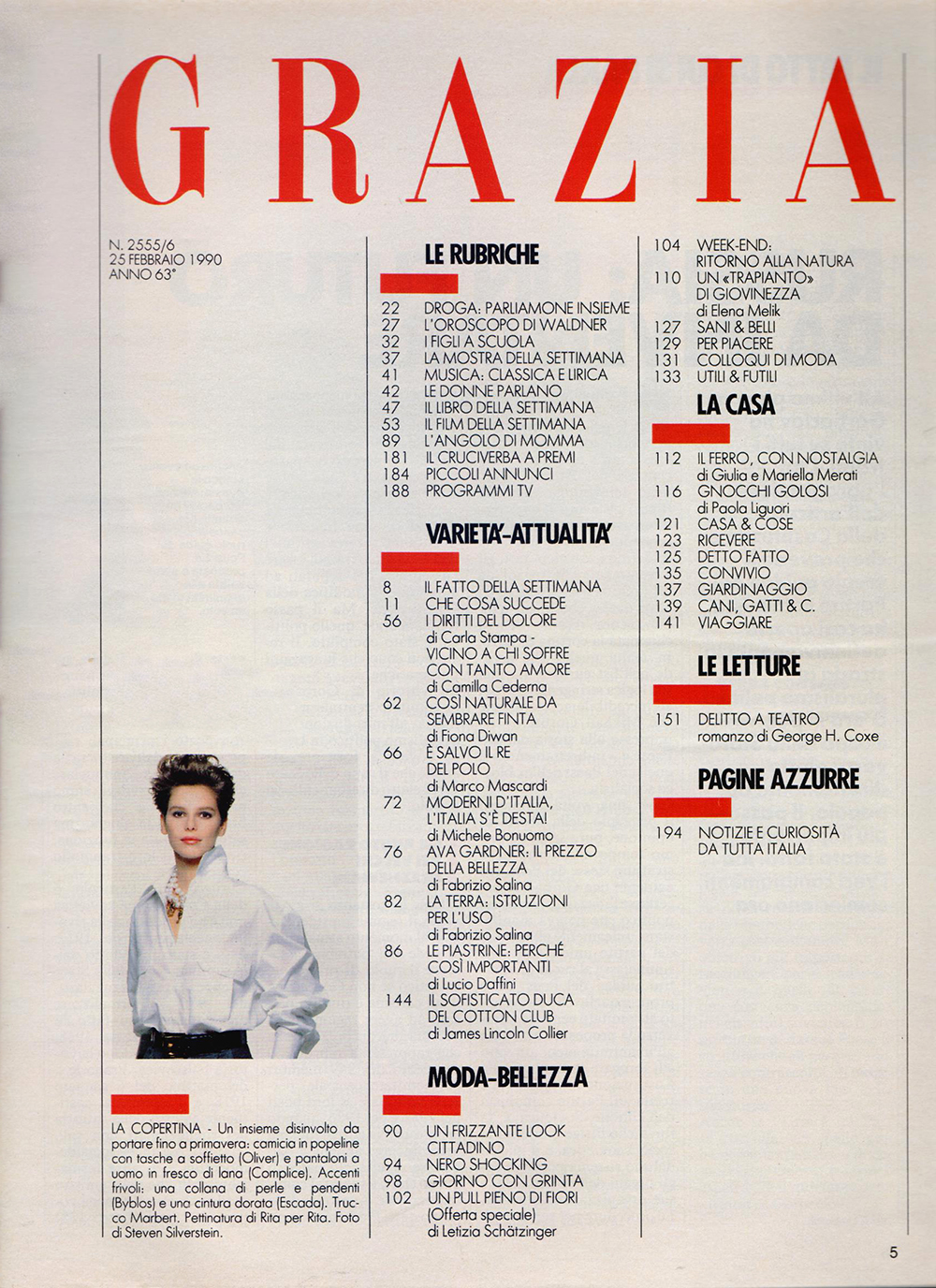 GRAZIA IT, 25 Feb 1990: CLAIRE DHELENS BY STEVEN SILVERSTEIN