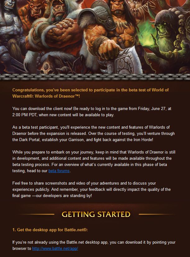 Warlords of Draenor Beta Invites