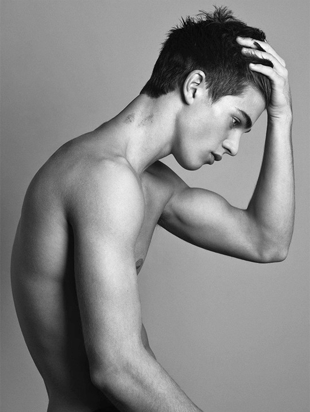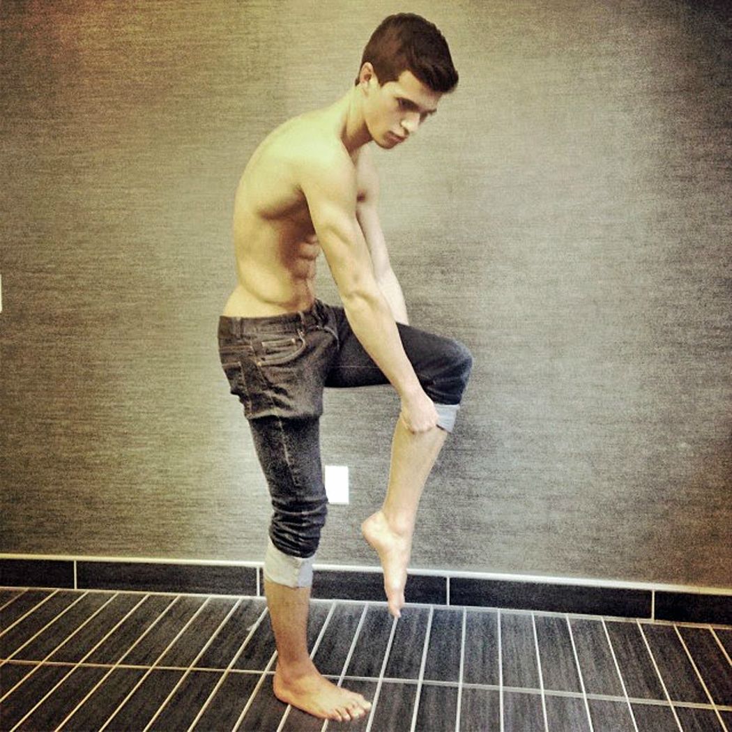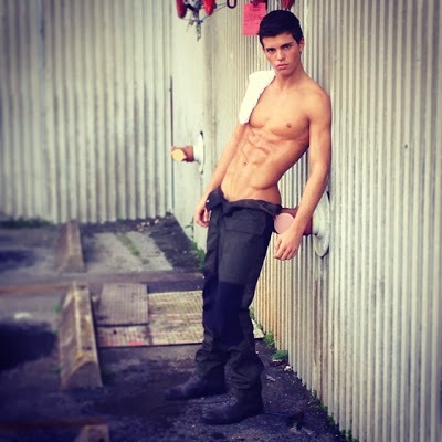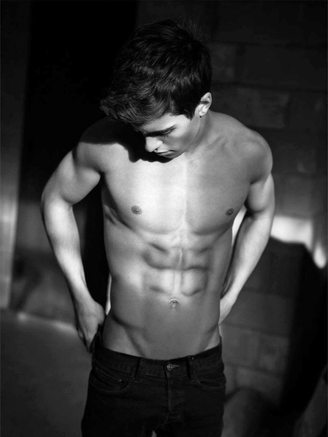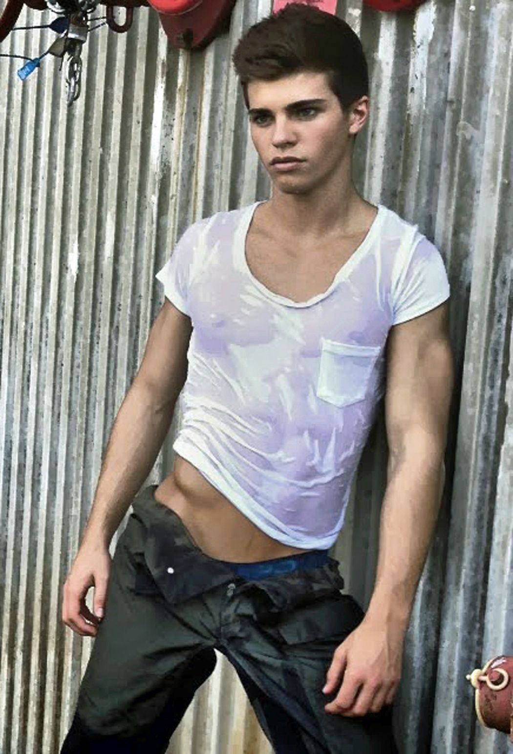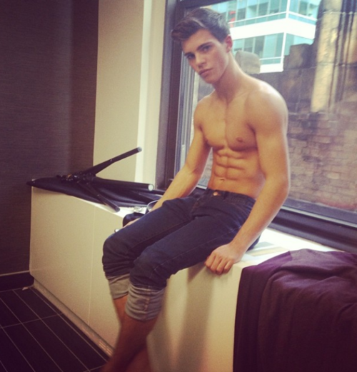 What a beautiful boy. Beautiful eyes, beautiful abs, beautiful nips, beautiful hairy legs, beautiful treasure trail and what looks like a beautiful ass.