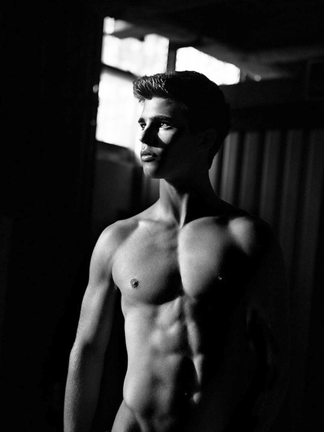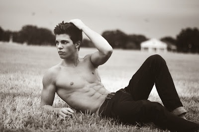 I think that this is the most stunning, breath-taking series of photos of a male model (or of any male) that I have ever seen in my life. Needless to say, the photographer, Deon Jackson, had a stunning, breath-takingly beautiful model to work with, but I must say that Jackson's use of chiaroscuro -- the use of light and darkness to highlight his subject -- is astounding. He makes Brandon look like a god. My hat is off to Jackson for this gorgeous series, and of course my congratulations to Brandon for knowing how to work so well with the photographer to produce these superb poses. Brandon is simply sublime.