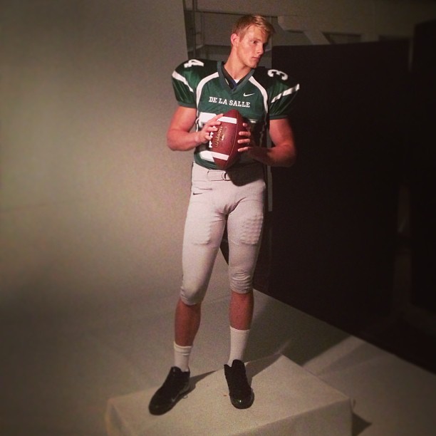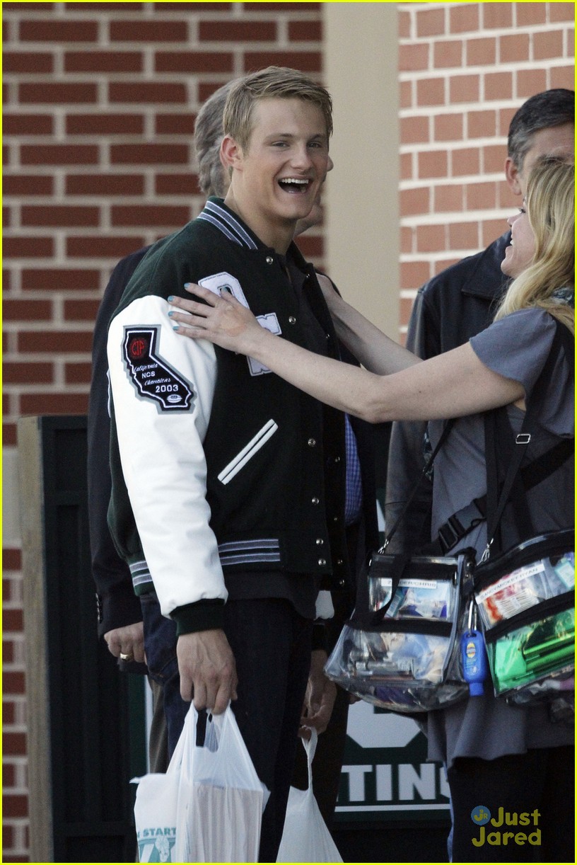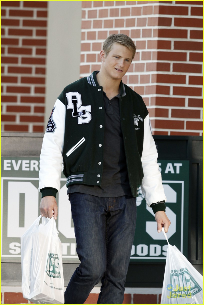 Alexander Ludwig wears his varsity jacket proud on the set of When The Game Stands Tall on Monday afternoon (May 13) in New Orlean, La. The 21-year-old actor carried bags from Dick’s Sporting Goods while filming alongside Clancy Brown.