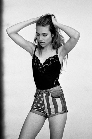 HEIGHT 5'8.5" HAIR dark blonde EYES blue BUST 32" WAIST 23" HIPS 33" SHOES 9