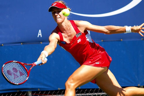 DOHA, QATAR - OCTOBER 29: Elena Dementieva of Russia announces her retirement to the WTA players during day four of the WTA Championships at the Khalifa Tennis Complex on October 29, 2010 in Doha, Qatar.