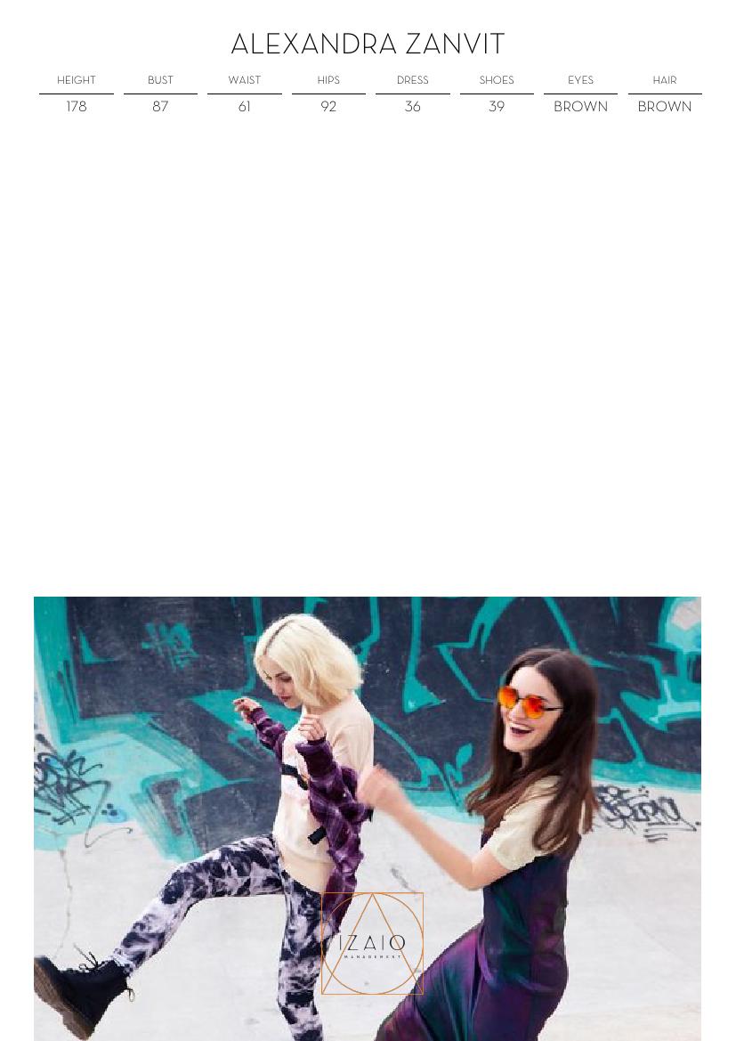 HEIGHT178BUST87WAIST61HIPS92DRESS36SHOES39EYESBROWNHAIRBROWN