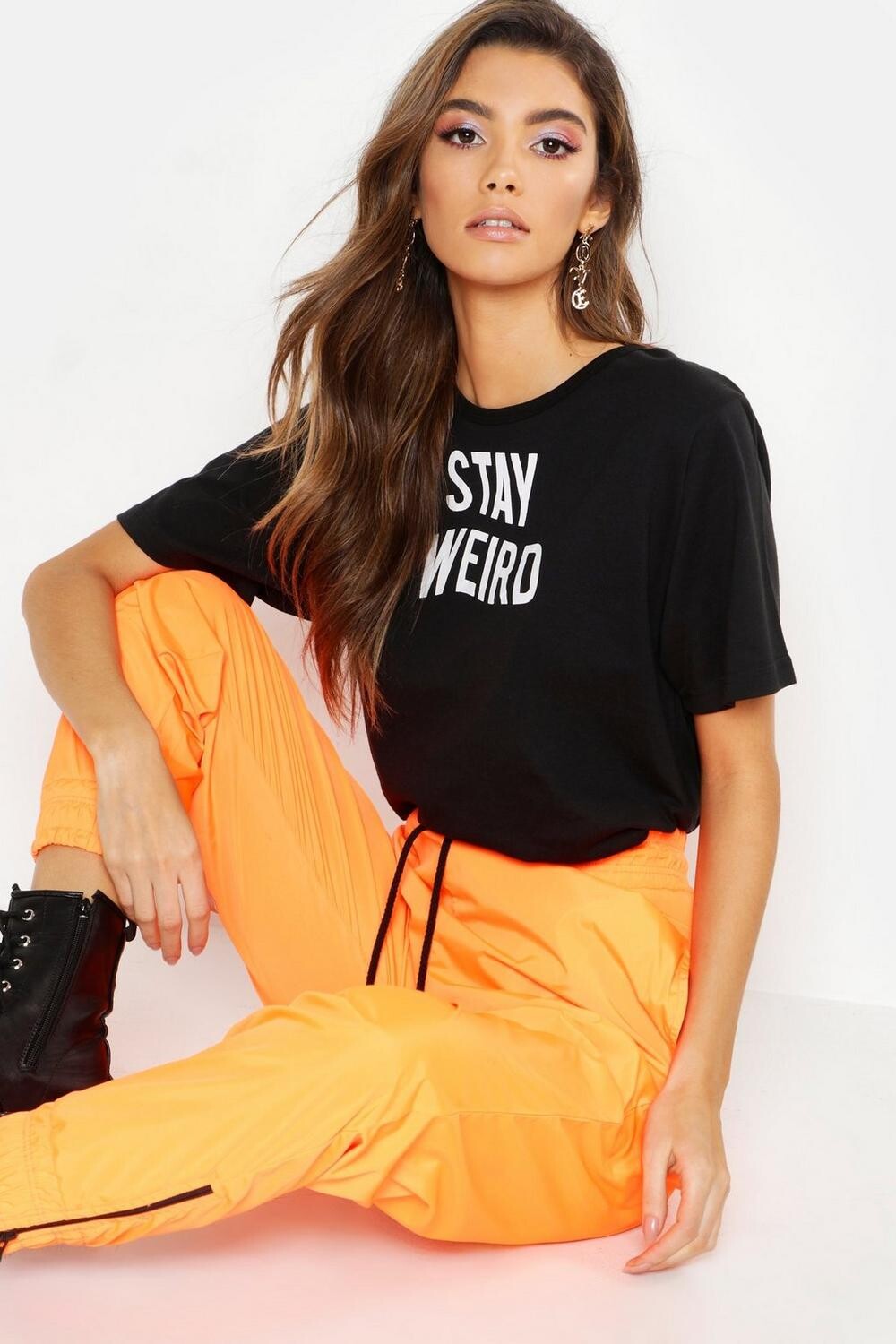 but why boohoo or whatever have such ugly clothes? good lord. the only good outfit is the black dress with the green weird printed long sleeve shirt I would actually buy that in a hearbeat...good thing she's pretty because those clothes are EW.