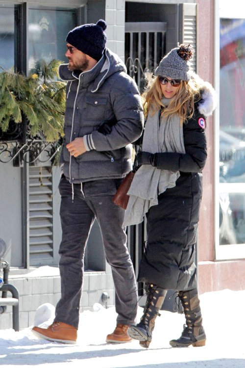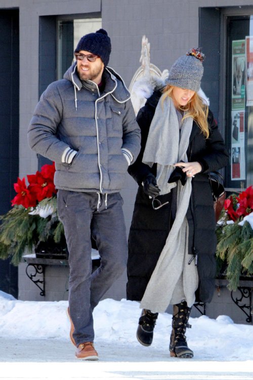 While Blake kept it casual in a black ensemble, checkered green coat and bowler hat, leading man Ryan rocked jeans and a puffer vest.