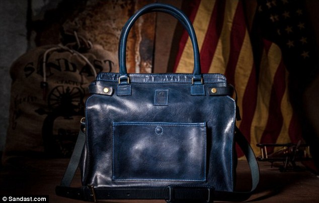 The 'custom-made baby bag' was crafted with the help of Sandast and is available in cognac and blue shades of leather.