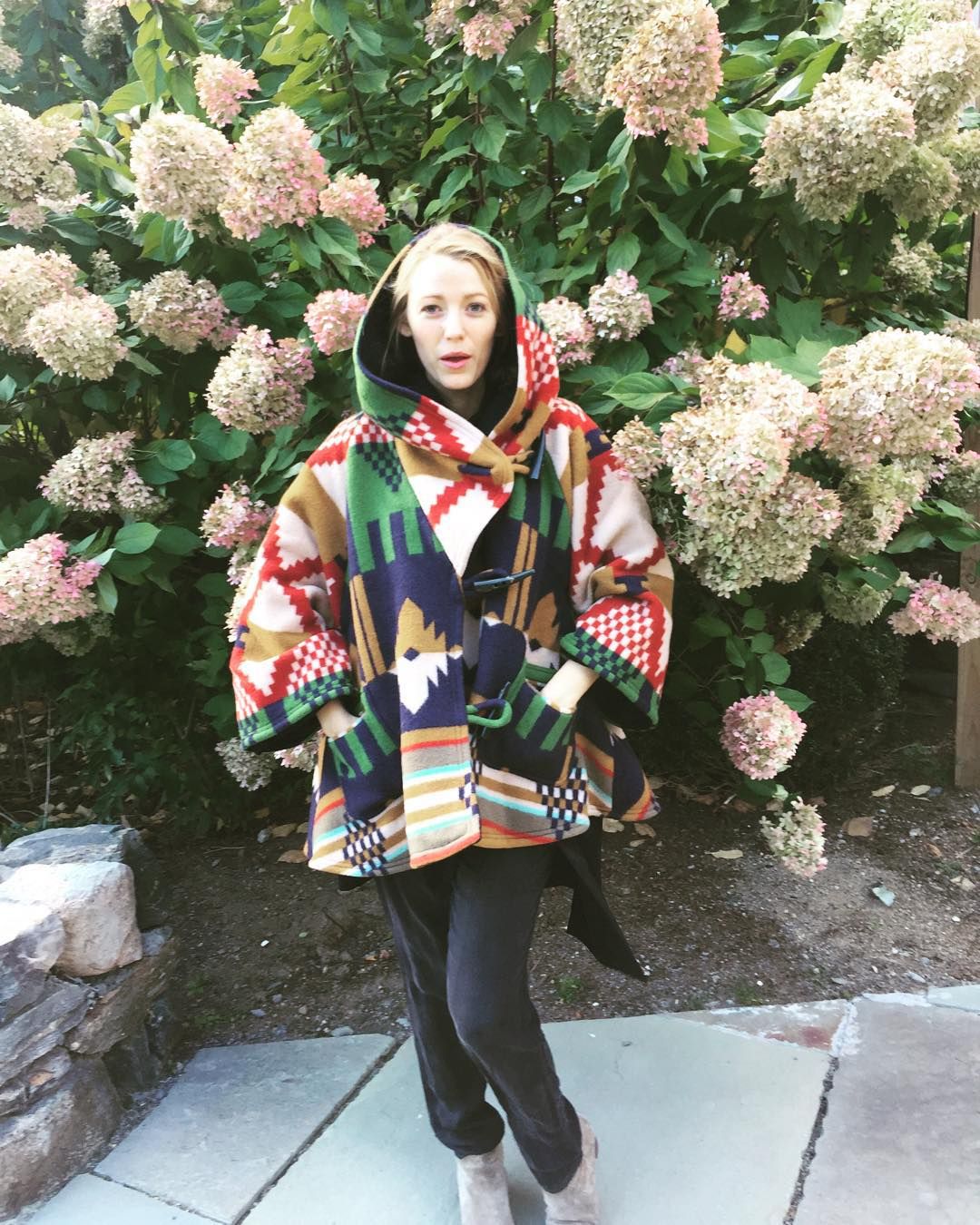 blakelively...the face you make when your sister busts you for putting an @lindseythornburg cloak and @isabelmarant boots on over your pajamas to make it look like you're not a loser who slept in. #RockinPajamasAllDayLong #CanLindseyPleaseMakeACoutureSnuggie