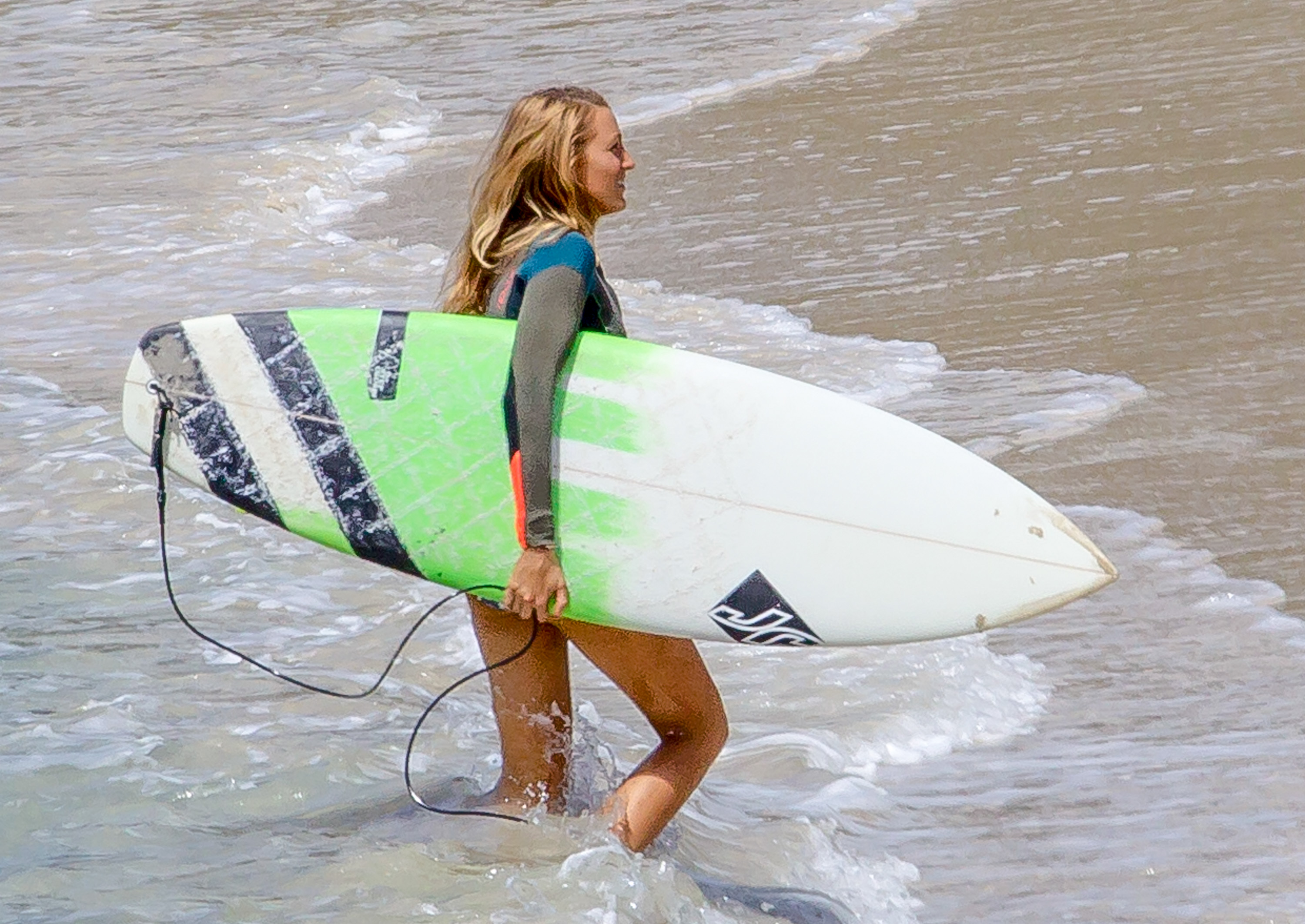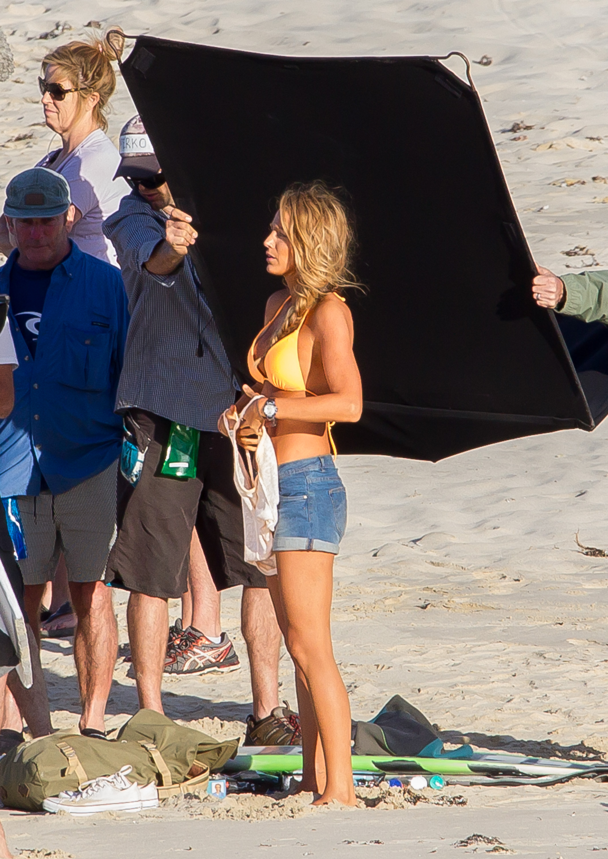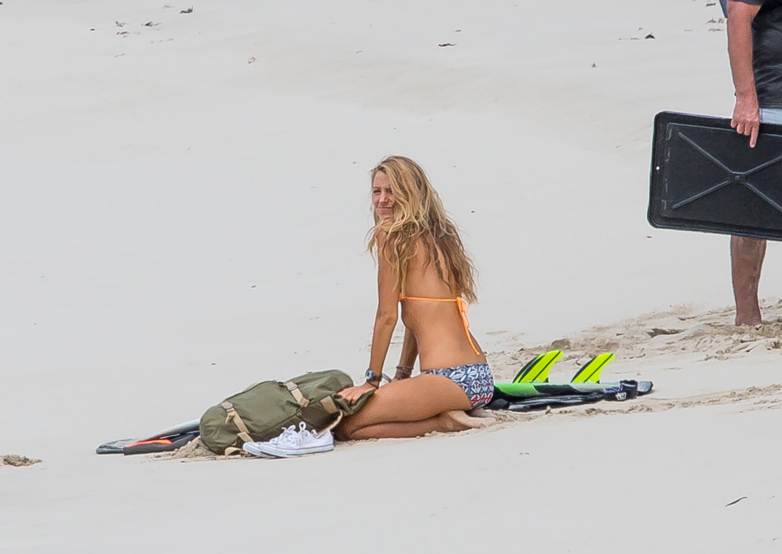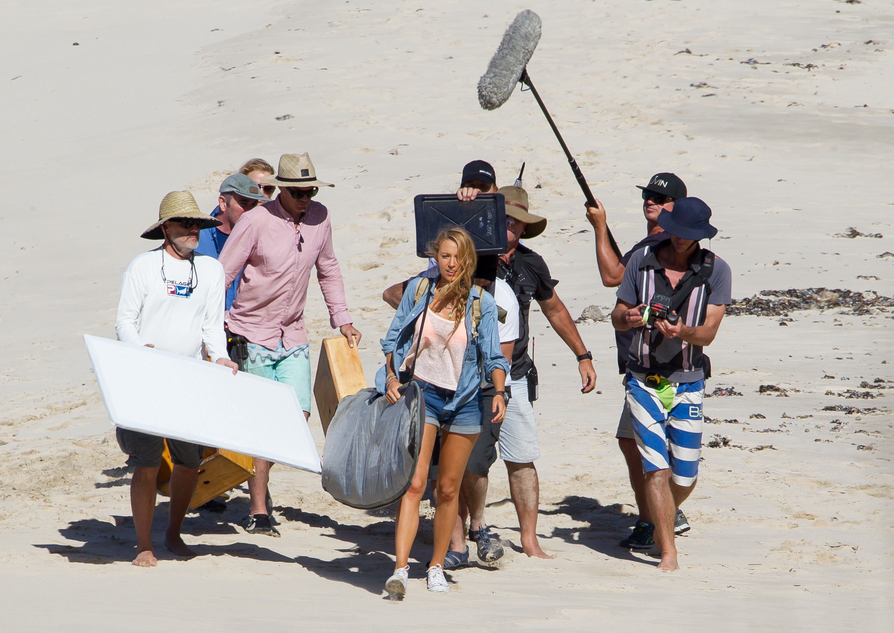 The actress was photographed on the set of her new movie, The Shallows, in Lord Howe Island in New South Wales, Australia, late last week. Blake looked toned and tanned in a yellow-orange triangle top and printed bottoms as she filmed scenes on the beach. At various points during the outdoor shoot, she covered up by wearing jean shorts, a long sleeved sweater or a wetsuit jacket.