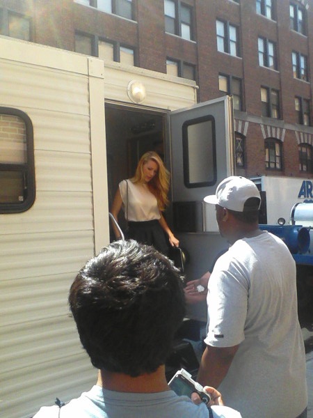 @quattykitty Catherine AmoreJust walked onto the set of Gossip Girl down 28th off of 10th ave. Umm, oh hey Blake Lively how are ya?