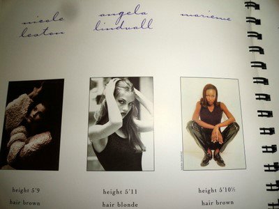 Karen Alexander, Annette, .Stephanie Ansell, Joslyn Baxter, Nicole Beach, Andrea Bergh, Bianca, Gina Cambre, Mary Catherine, Jill Goodacre, Mary Cullen Weeden, Daria, Deanna, Aly Dunne, Jennifer Flavin, Geri, Susan Gin, Gray, Tara Green, Leah Gregory, Lara Harris, Kerri Henderson, Leticia Herrera, Kathy Holliday, Gigi Howard, Jodie Kidd, Jolanda, Karine Katz, Kira, Marlen Koehler, Kristina Kumlin, Laila, Padma Lakshmi, Janna Lapidus, Ling, Louise, Jade Malle, Missy, Nadege, Nessie, Tove Nord, Sarah Olsen, Dana Patrick, Pazit, Jane Powers, Joy Rich, Stephanie Seympur, Shana Zadrick, Tatiana Sorokko, Claudya Speidel, Tasha, Krissy Taylor, Karen Travis, Kaaren V, Varine, Nasdeja Vassilieva, Marleen Vatne, Yvonne.