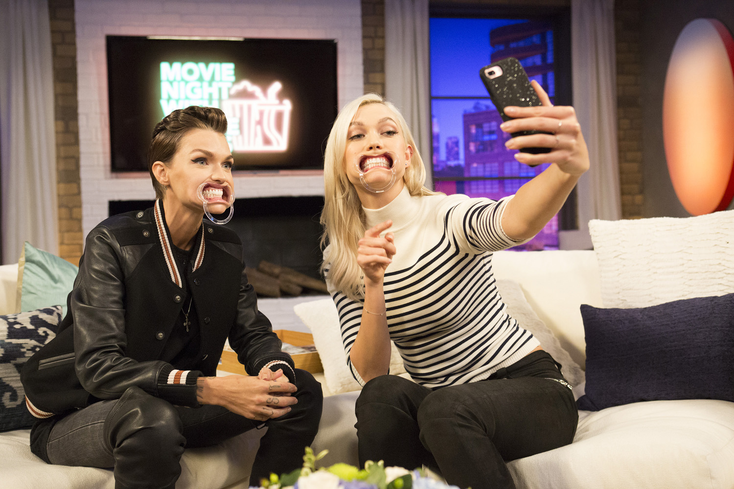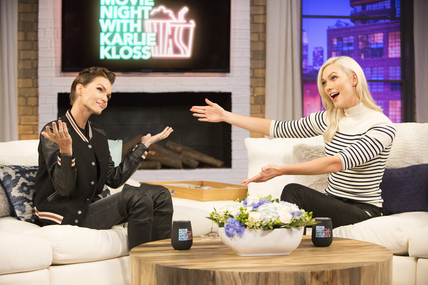 at the 31:44 mark Karlie backstage at the 2017 Victoria’s Secret Fashion Show, at the 34:28 mark short speaking part, and at the 42:53 mark Pink carpet
