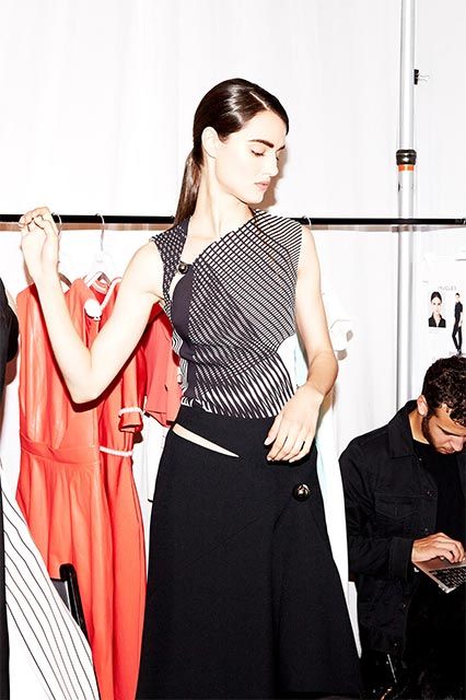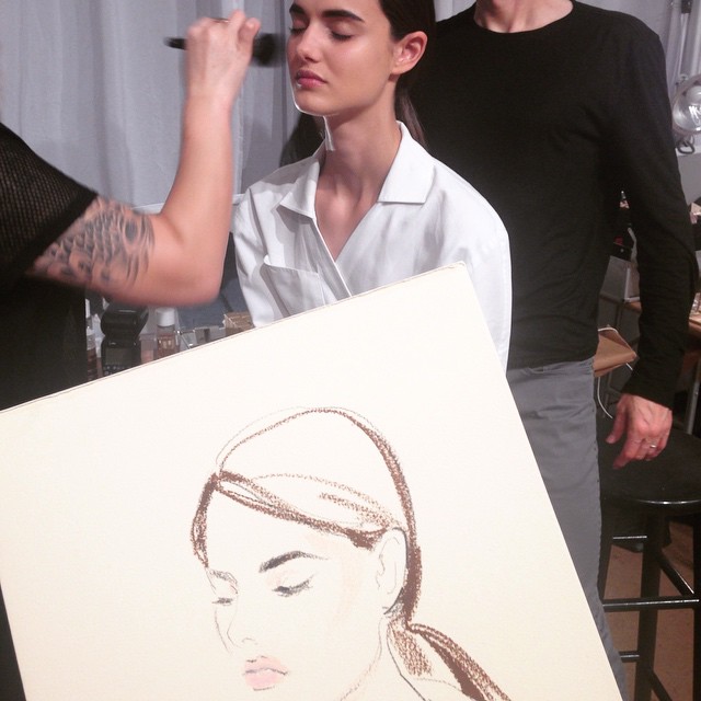 @blaancapadilla backstage at @muglerofficial #resort16 || by@beautyisboring_ @clarinsnews by@varinsalon, @_emmagarner