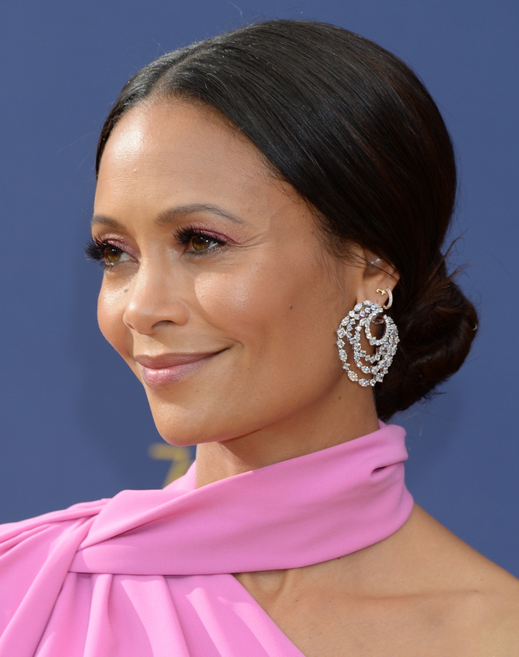 FYI: Thandie is wearing a Michael Kors Collection dress with Giuseppe Zanotti shoes.