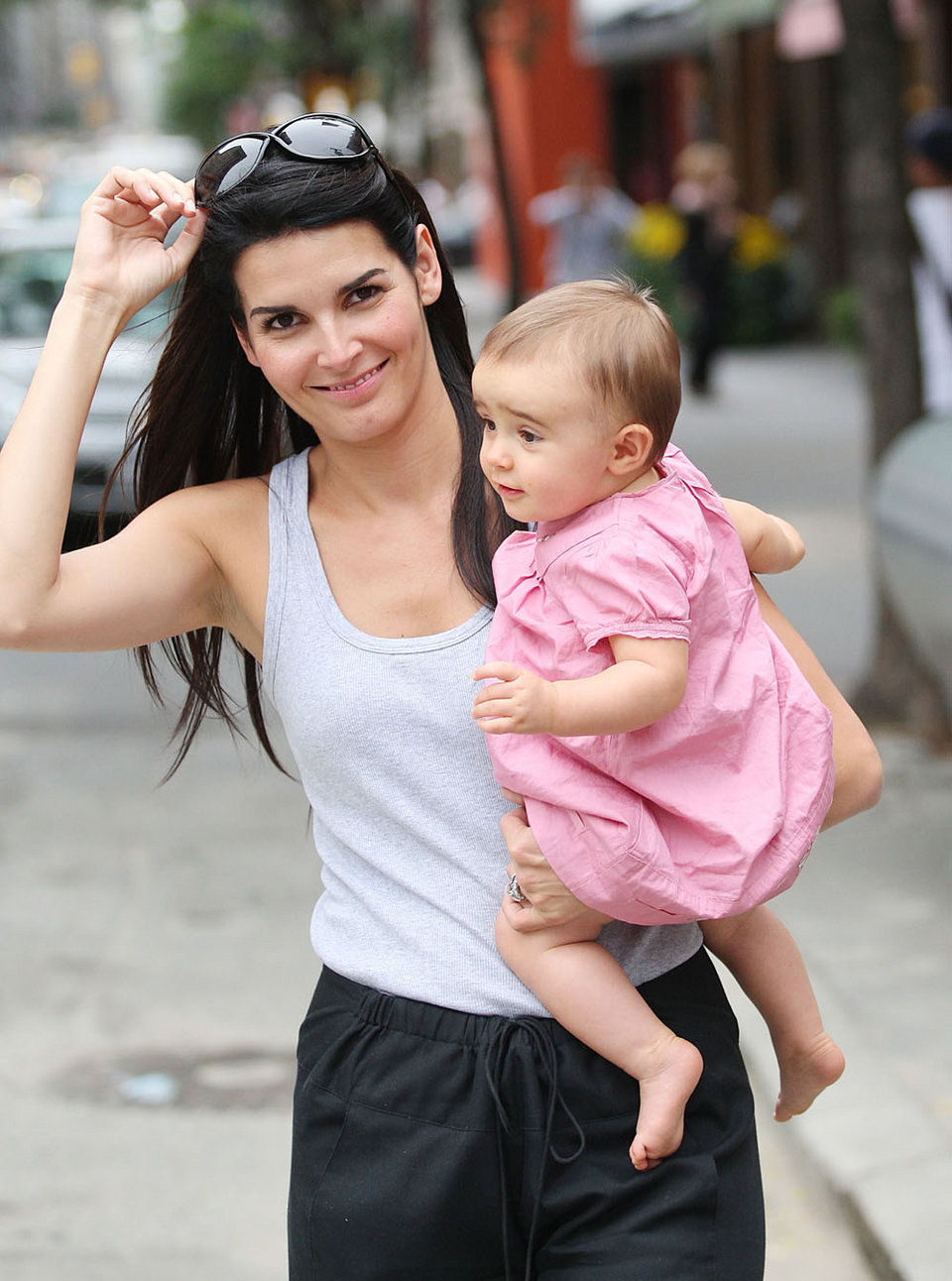 Angie Harmon and hubby Jason Sehorn were photographed with their youngest daughter, 9-month-old Emery Hope, after lunching at Nello's in New York City on Tuesday.