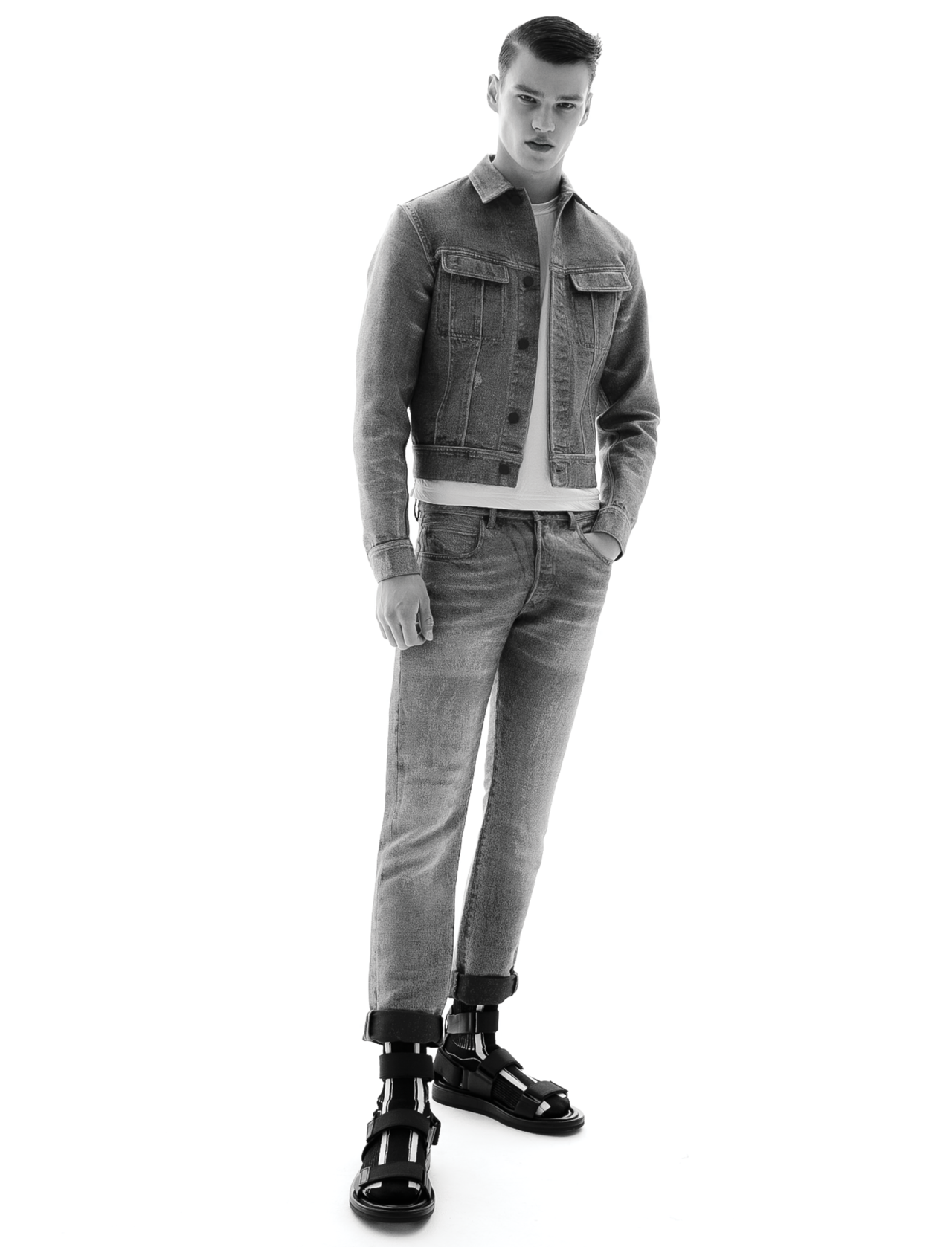 A former pro hockey player, Slovak new boy Filip started modelling 2 months ago after sending photos into Exit Model Management in Bratislava. Filip’s look is totally arresting – old Hollywood matinee idol meets brute force. This boy is indisputably all male, all the time. Darkly intense and totally photogenic, from his brooding glare down to his toes, Filip is the epitome of potential. Unplaced outside of his home town, it’s time to sign this professional to a major league team.